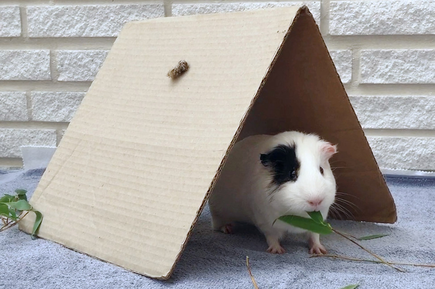 Gerade kurz nach dem Einzug kann es sein, dass sich die Schweinchen noch nicht so richtig aus ihren Unterschlüpfen trauen und kaum im Gehege zu sehen sind. Mehr Deckung von oben kann da wahre Wunder bewirken. Am einfachsten geht das mit einer Decke oder Handtüchern, die über Teile des Geheges gespannt werden.