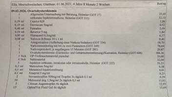 Wegen den Augen, sie hat beidseits eine Hornhautverletzung. Da ihre Augen aber eh schon trüb sind, hat man das nicht… -