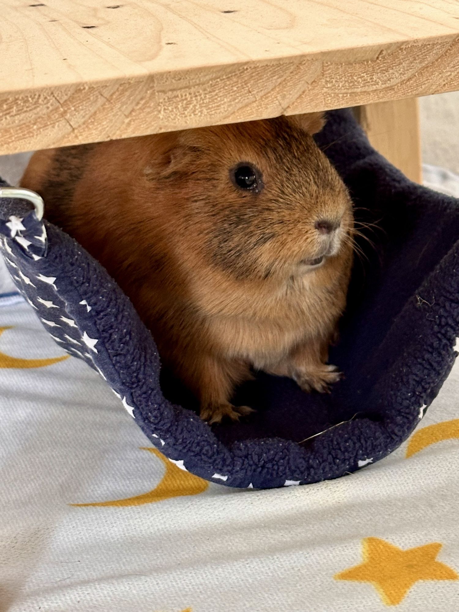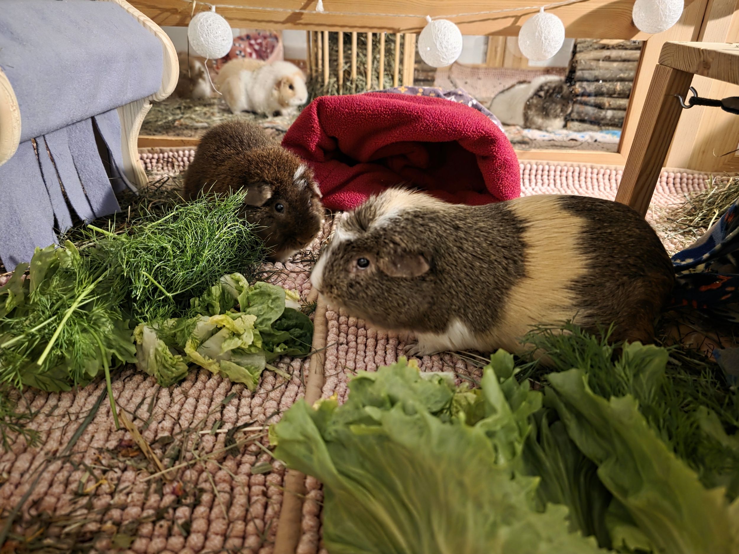 Wir haben sonst eher nur einen kleinen Bereich mit Fleece ausgelegt. Derzeit ist aber das ganze Gehege aufgrund einer OP damit ausgestattet.