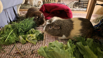 Hat eine Antwort im Thema Gesunder Leckerbissen verfasst.BeitragIch gebe auch sehr gerne kleine Gemüsestückchen als Leckerli, z. B. Paprika oder ein ganz dünnes (!) Rädchen Karotte. Sehr selten auch mal ein kleines Stückchen Apfel. Frisches Fenchelkraut finden meine Schweinchen auch total lecker.