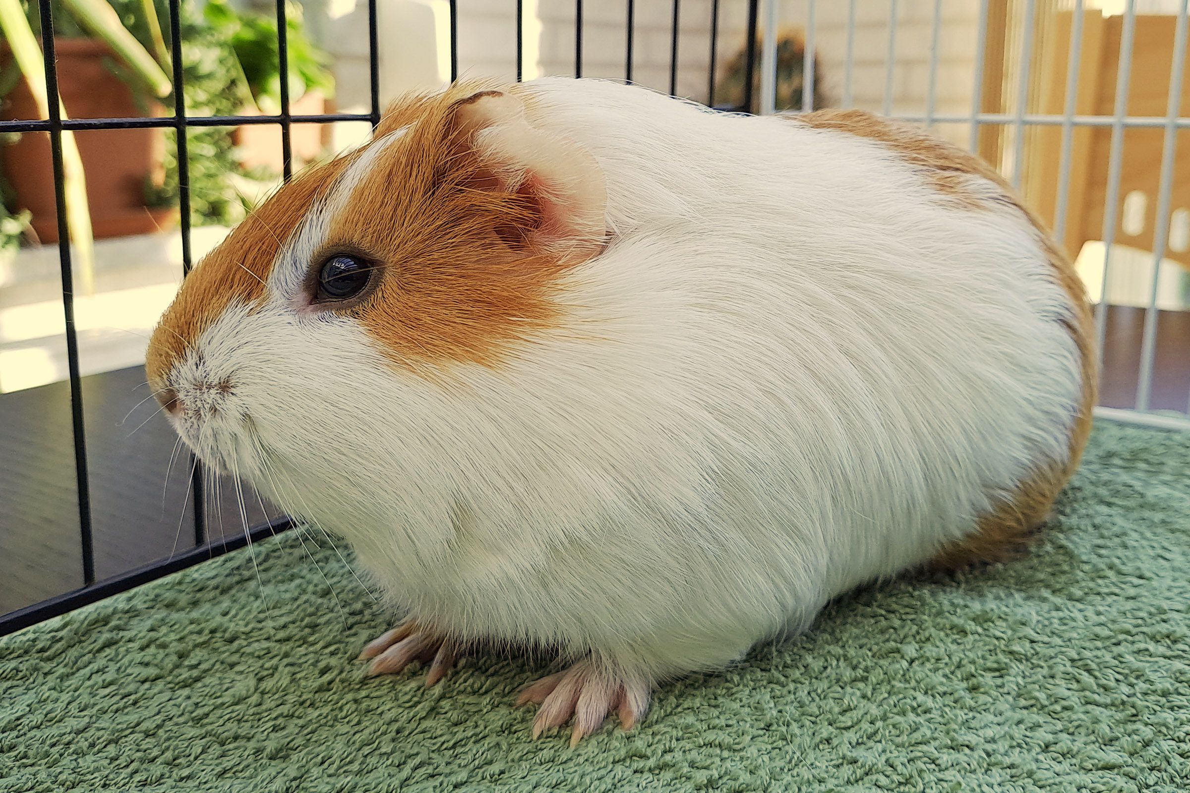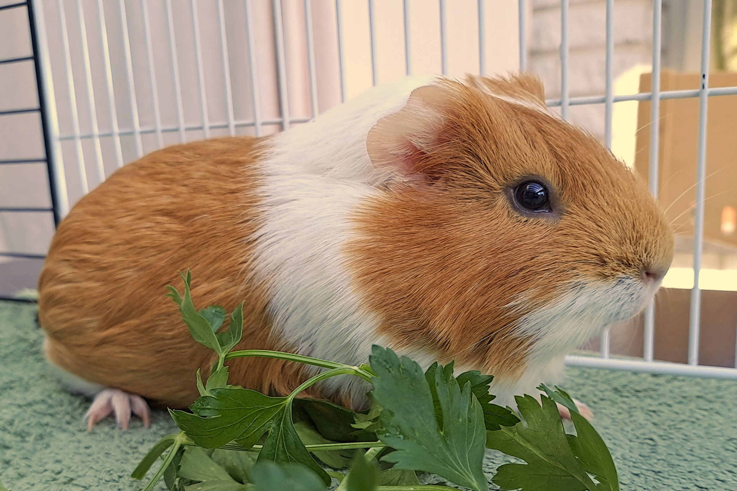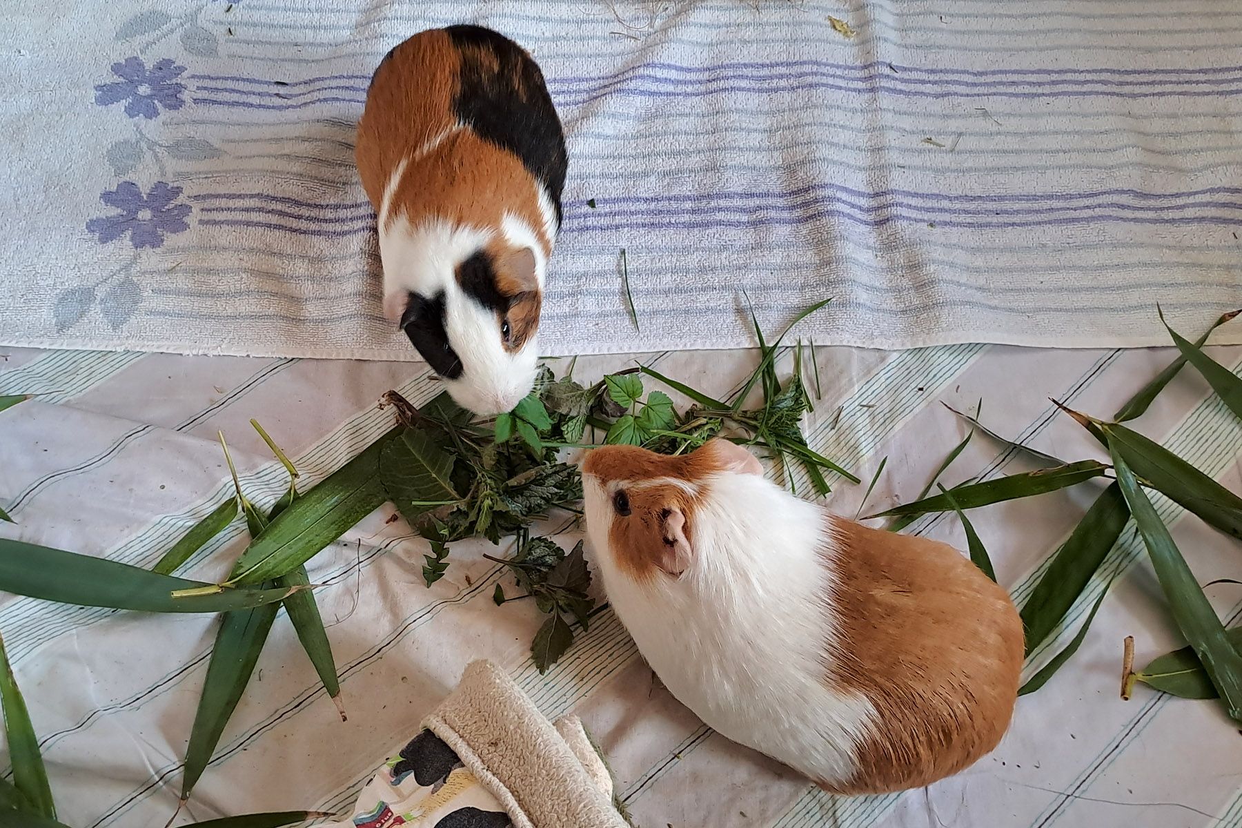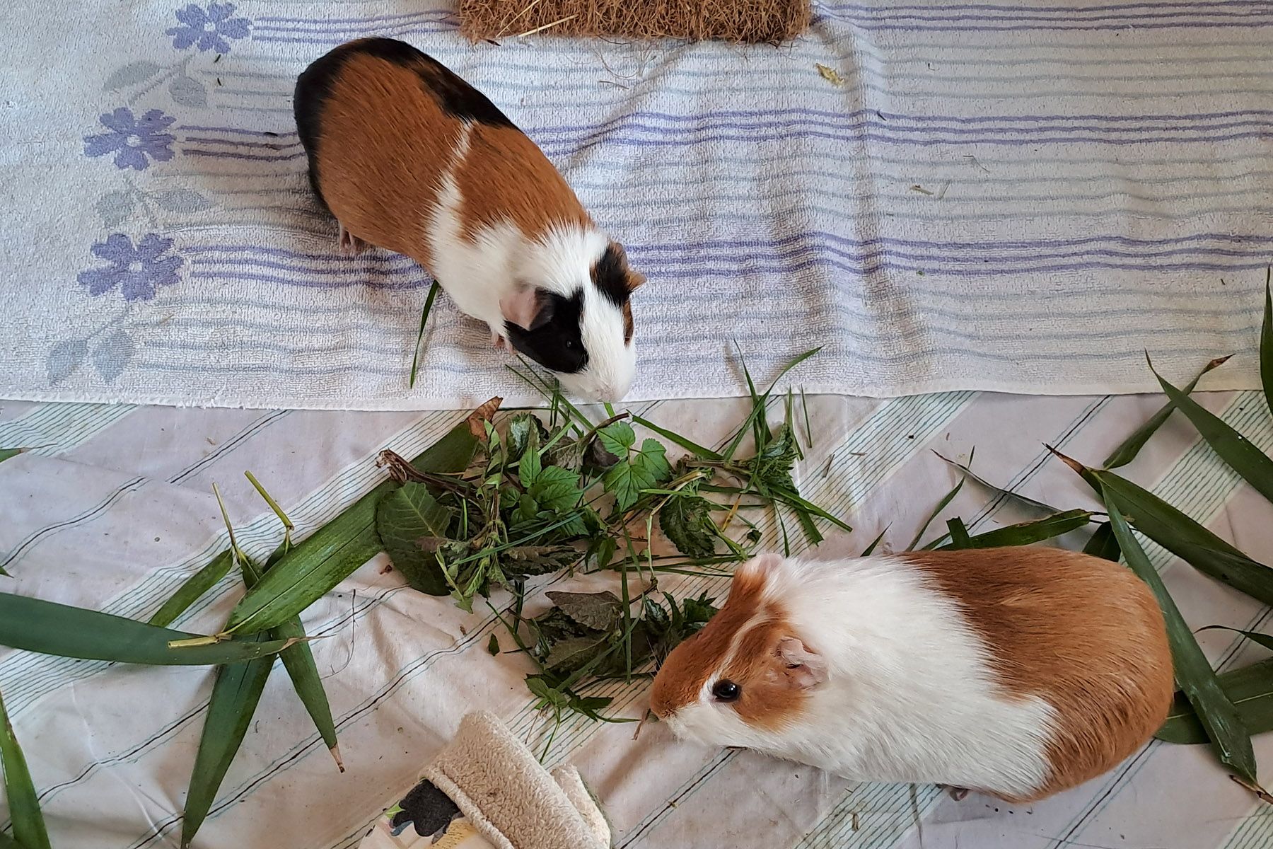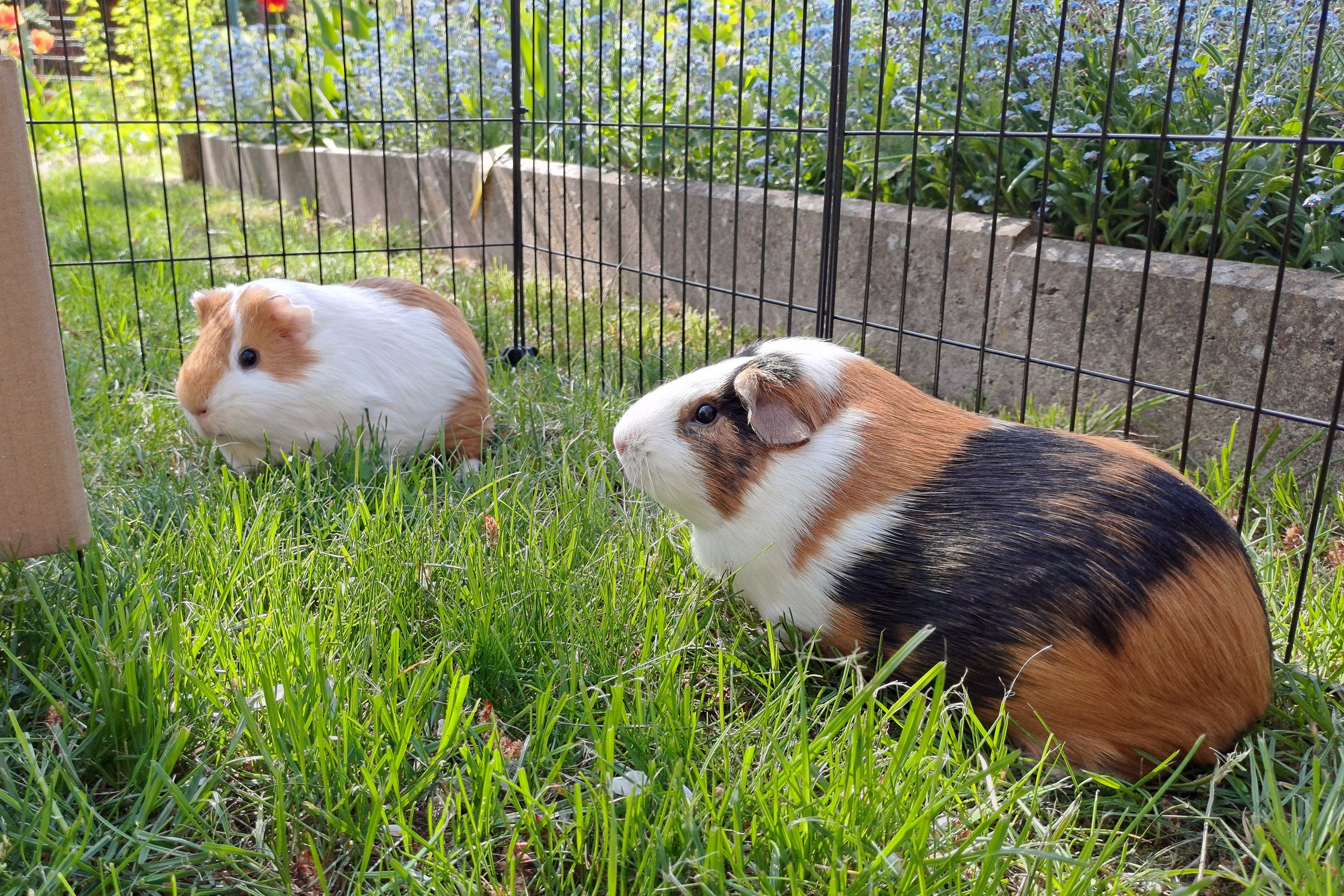 Mit dem Trenngitter dazwischen ist Fuchsi mittlerweile friedlich und freundlich interessiert gegenüber seinem Bruder. Fridolin brommselt ihn weiterhin freundlich an und möchte zu ihm.