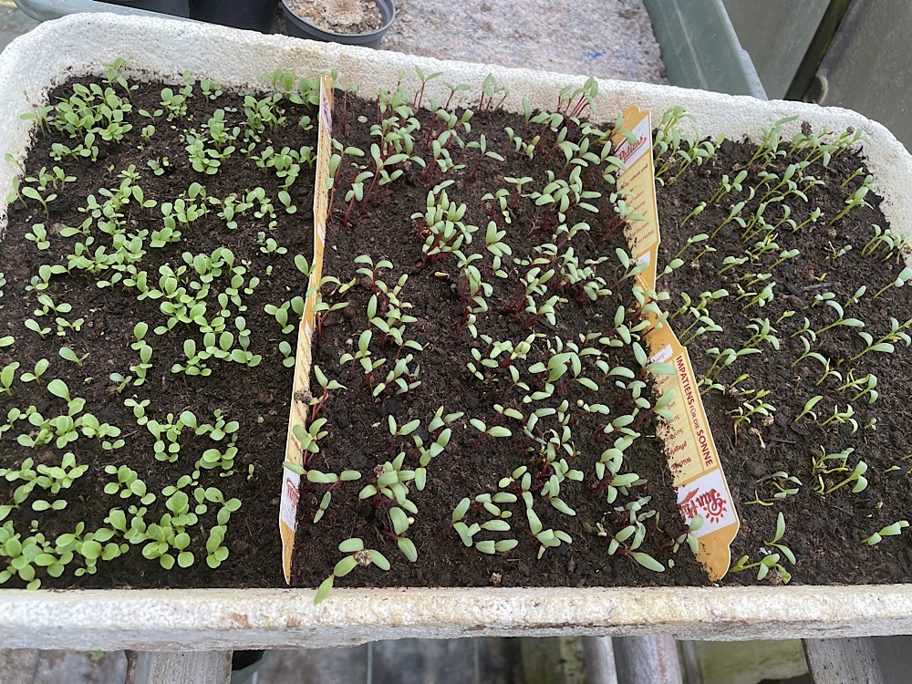 Mangold: Beliebt bei Mensch und Tier, wuchs problemlos und ertragreich. Die Blätter wurden restlos mit Stiel verputzt und die verschiedenen Farben waren noch was fürs Auge. Nächstes Jahr wieder!