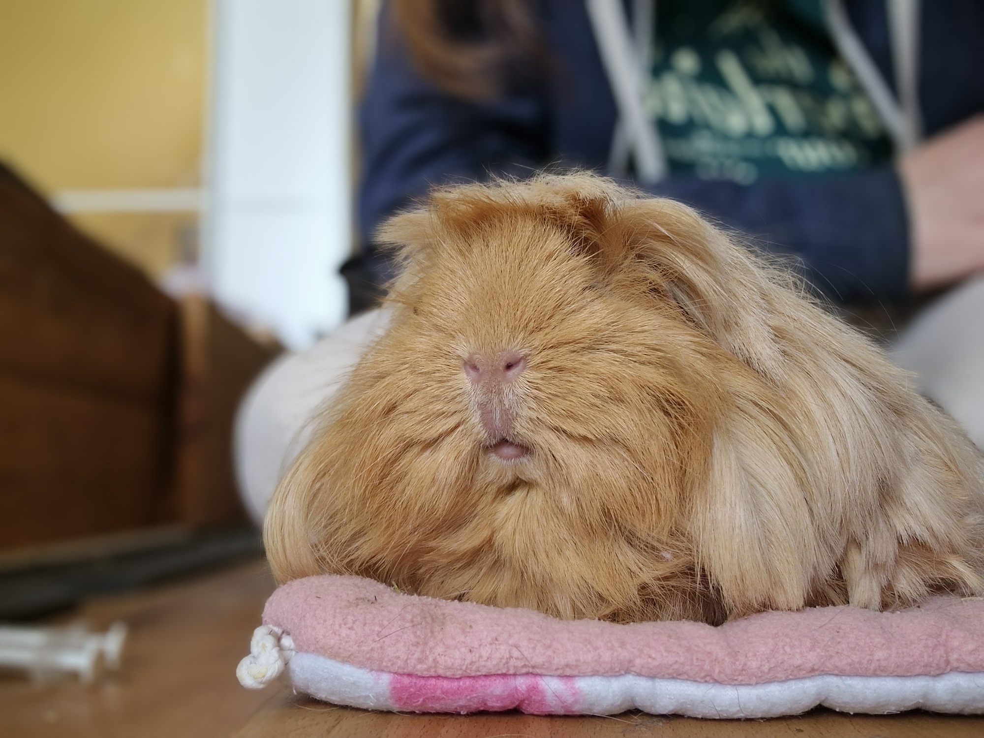 Ich hatte uns morgen mit zwei Schweinchen beim Tierarzt angemeldet und heute getüvt um zu schauen, ob ich jemanden sinnvoll mitnehmen kann. Jetzt würde mich mal eure Einschätzung zu Helga interessieren. Sie ist in einer schlimmen Haltung groß geworden mit zu wenig Futter, alles dreckig und dauerträchtig. Mit etwa 7-10 Monaten kam sie aus der Haltung noch trächtig und bekam im Dezember ihre letzten Babys. Im Februar 2023 zog sie mit 1089g bei uns ein. Dann hat sie stetig zugenommen und war die letzten Wochen auf 1440g-1480g. Heute hatte sie dann 1522g. Man kann ihre Rippen okay gut fühlen bei etwas Druck und ihre Hüfte ist gut tastbar. Ihr Körper ist schon immer etwas schwabbelig, gerade im Bauch, was von den Trächtigkeiten kommen könnte. Zudem ist sie sehr ruhig, schläft viel und bewegt sich nicht so viel. Zum Vergleich, Ilse unsere Rentnerin ist immer unterwegs und Helga legt sich manchmal auf dem Weg zum Futter zwischendrin hin. Wenn man ihr Erbsenflocken hin wirft bewegt sie sich oft gar nicht und sie schläft manchmal stundenlang ohne sich zu bewegen (außer Seitenwechsel). Das ist ja auch okay, aber langsam beunruhigt mich ihr Verhalten und ihr Gewichtsverlauf. Sie war aber natürlich noch im Wachstum (sie ist seit sie ca. 1 Jahr alt ist bis jetzt vielleicht 2,5 Jahre bei uns), was das Zunehmen verfälschen könnte.