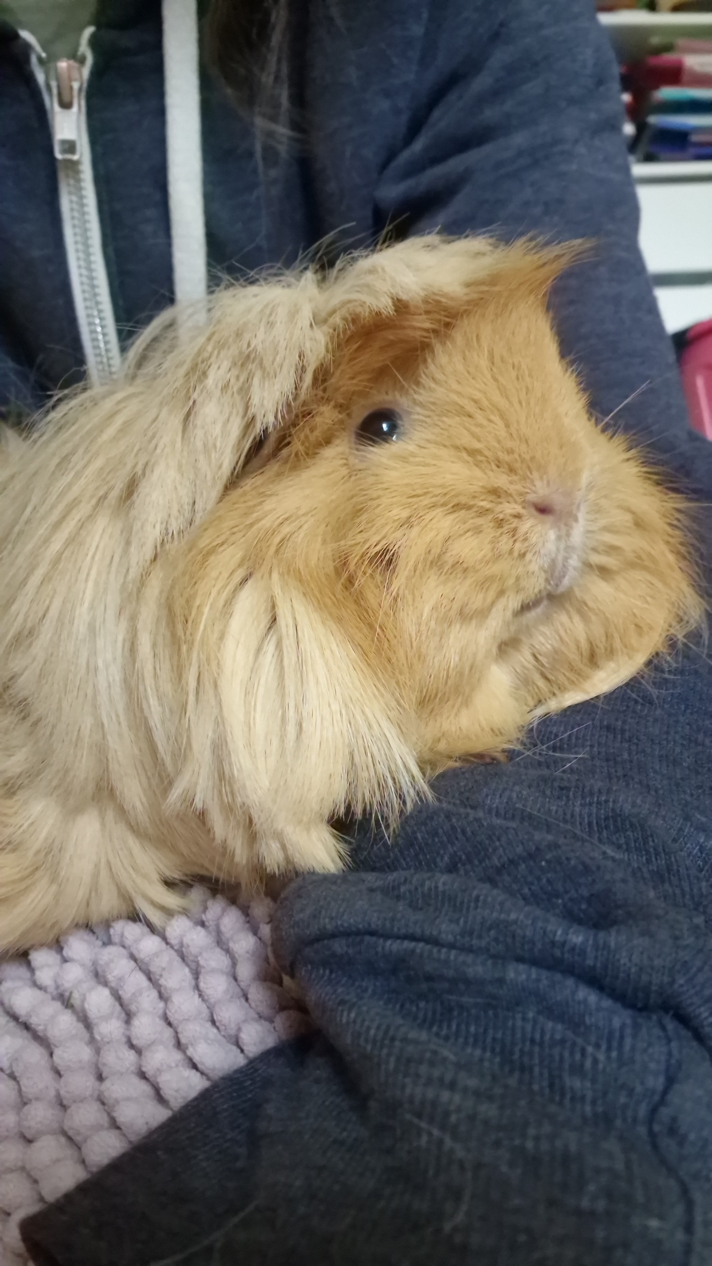 Ich hatte uns morgen mit zwei Schweinchen beim Tierarzt angemeldet und heute getüvt um zu schauen, ob ich jemanden sinnvoll mitnehmen kann. Jetzt würde mich mal eure Einschätzung zu Helga interessieren. Sie ist in einer schlimmen Haltung groß geworden mit zu wenig Futter, alles dreckig und dauerträchtig. Mit etwa 7-10 Monaten kam sie aus der Haltung noch trächtig und bekam im Dezember ihre letzten Babys. Im Februar 2023 zog sie mit 1089g bei uns ein. Dann hat sie stetig zugenommen und war die letzten Wochen auf 1440g-1480g. Heute hatte sie dann 1522g. Man kann ihre Rippen okay gut fühlen bei etwas Druck und ihre Hüfte ist gut tastbar. Ihr Körper ist schon immer etwas schwabbelig, gerade im Bauch, was von den Trächtigkeiten kommen könnte. Zudem ist sie sehr ruhig, schläft viel und bewegt sich nicht so viel. Zum Vergleich, Ilse unsere Rentnerin ist immer unterwegs und Helga legt sich manchmal auf dem Weg zum Futter zwischendrin hin. Wenn man ihr Erbsenflocken hin wirft bewegt sie sich oft gar nicht und sie schläft manchmal stundenlang ohne sich zu bewegen (außer Seitenwechsel). Das ist ja auch okay, aber langsam beunruhigt mich ihr Verhalten und ihr Gewichtsverlauf. Sie war aber natürlich noch im Wachstum (sie ist seit sie ca. 1 Jahr alt ist bis jetzt vielleicht 2,5 Jahre bei uns), was das Zunehmen verfälschen könnte.