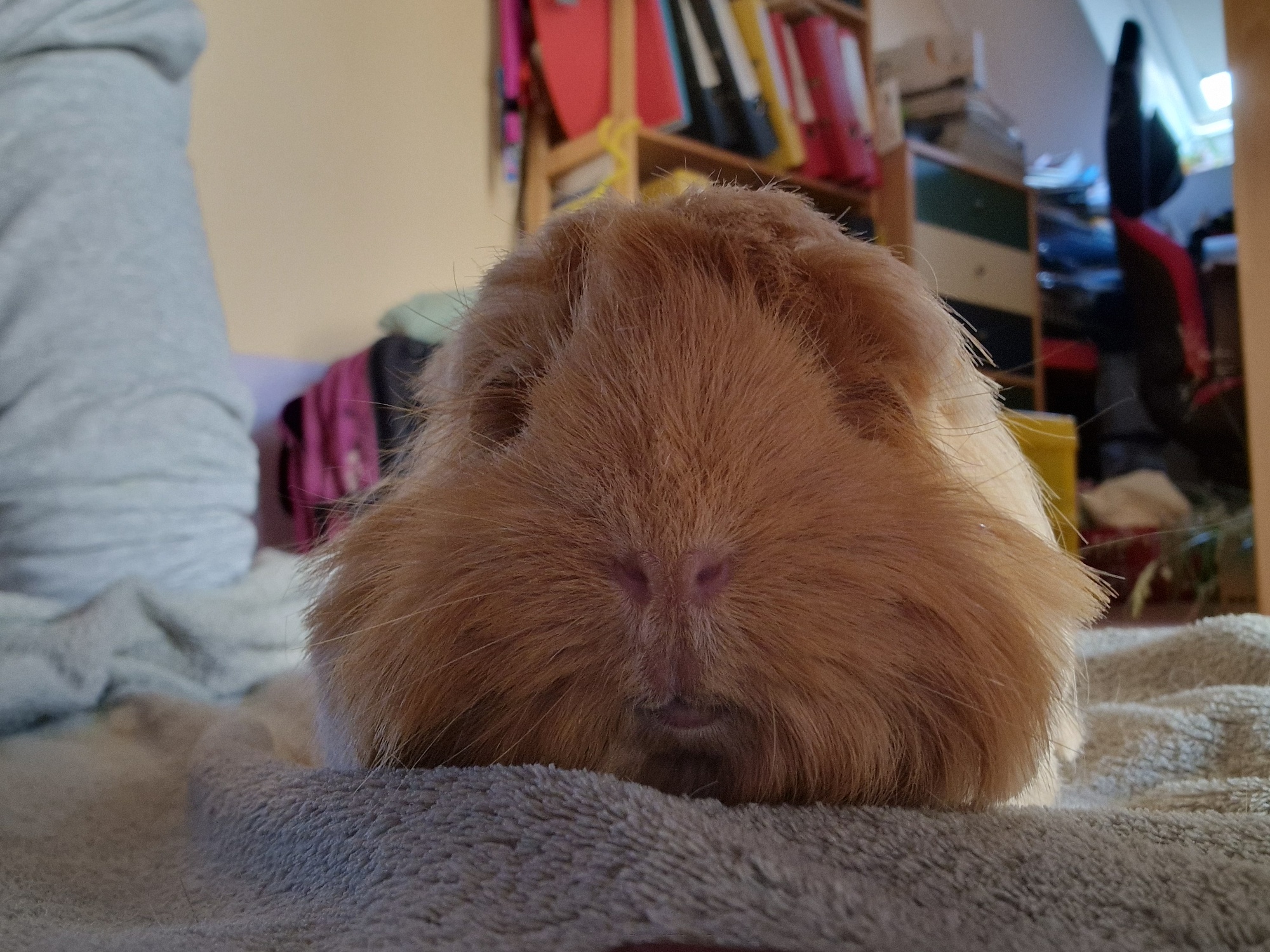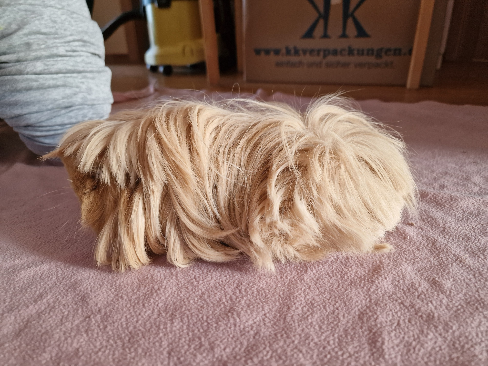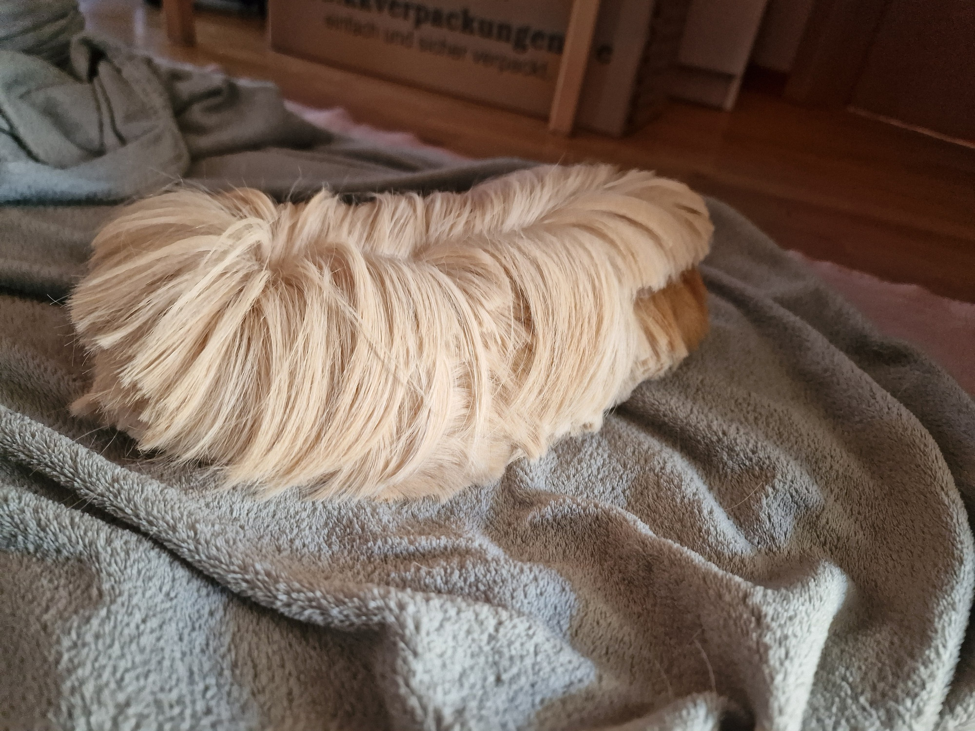 • Vielleicht war mein letzter Beitrag missverständlich. Natürlich sollte man versuchen, zu dicke Schweinchen zum Abnehmen zu bringen. Scotty hat gegenüber seinem absoluten Höchstgewicht 150g weniger und das schon seit ein paar Monaten. Darum hatte ich mich auch bemüht. Und würde jetzt auch noch weitere Abnahme um 150 bis 250g hilfreich finden. Aber er ist nicht klein, ist ein Böckchen und wiegt jetzt 1162g. Das ist noch einmal etwas ganz anderes als bei Helga, zumal bei ihr ja auch die Belastung für die kaputten Füßchen noch hinzukommt.