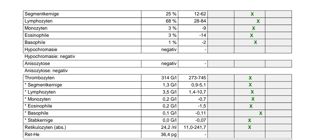Ich hab ihr Blutbild jetzt, da hatte sie zumindest alles soweit gut.