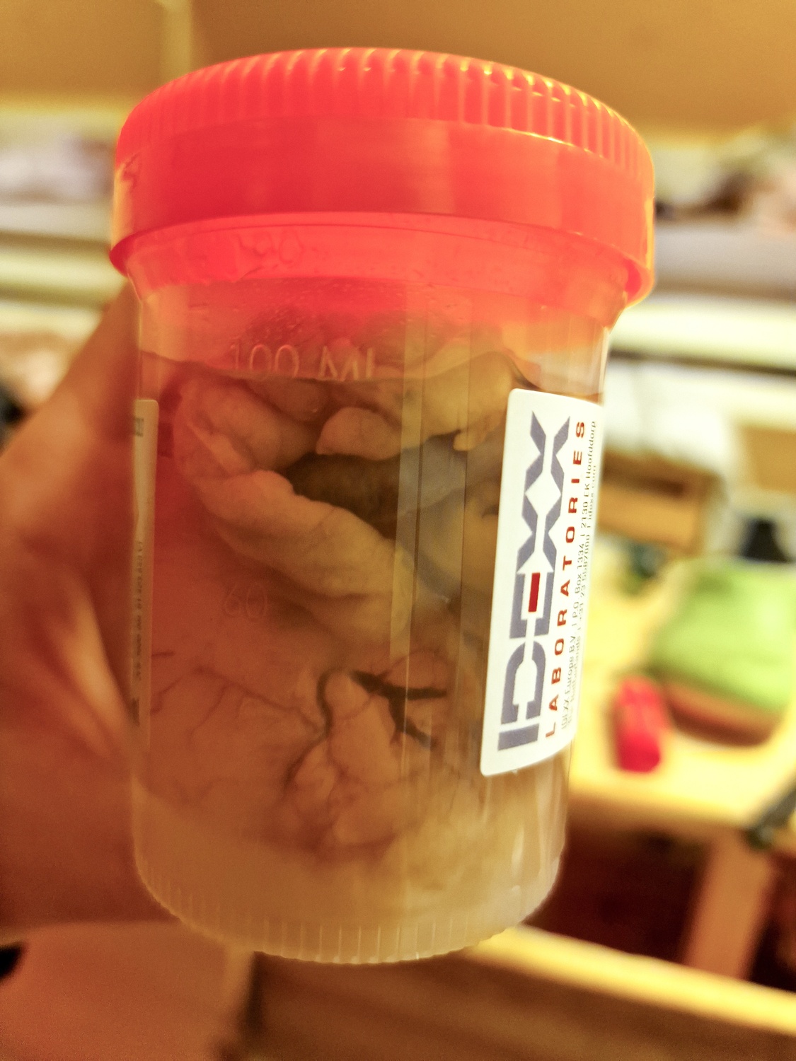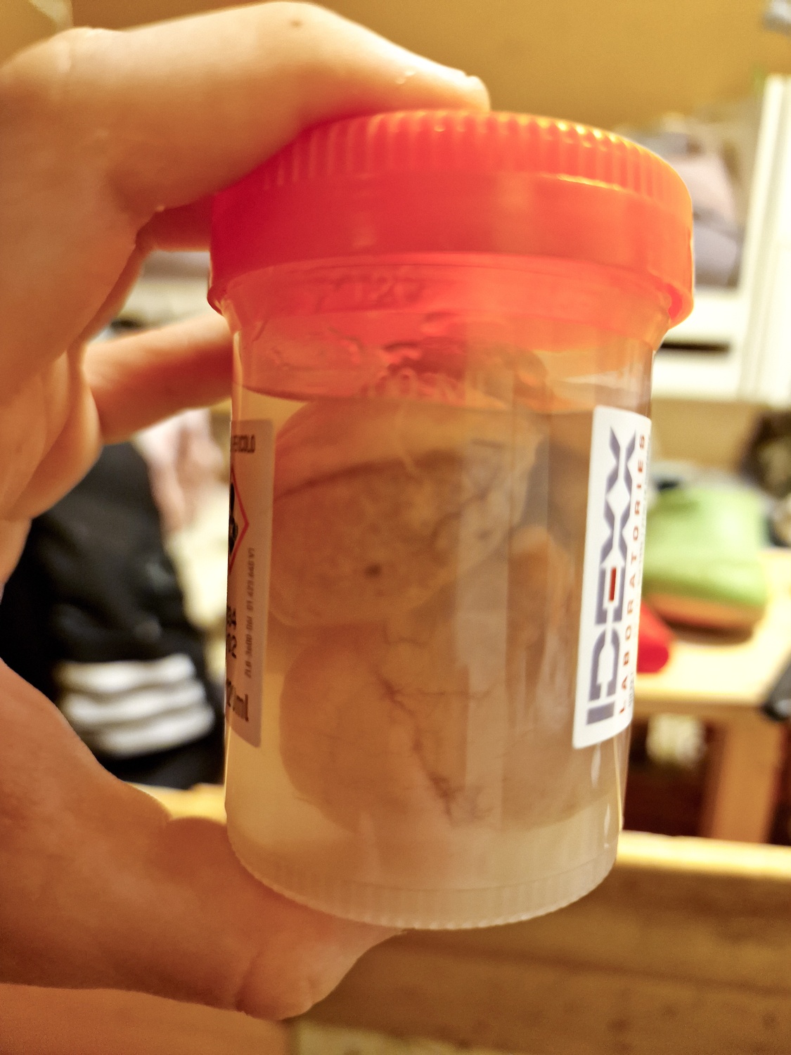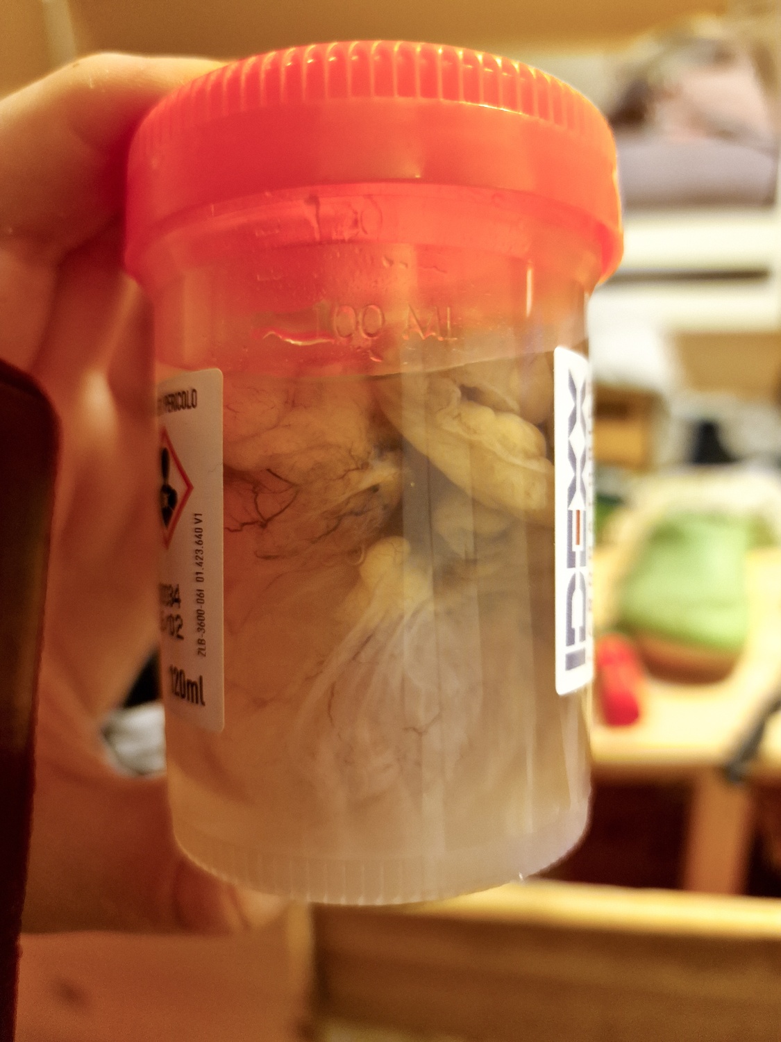 Als bei Dachsi die Gesäugetumore entfernt wurden, hat die Ärztin sie mir auch in einem solchen Behälter gezeigt. Das ist sagt als nur eine Angabe in Zentimeter zu hören.