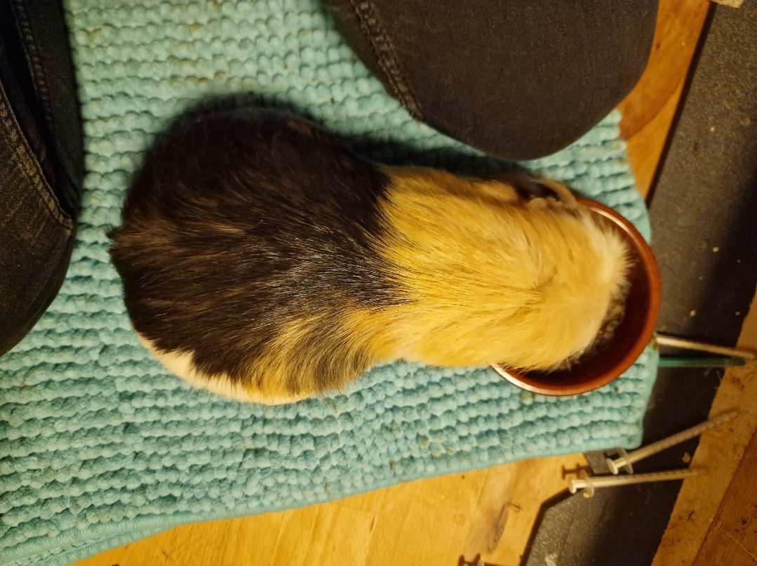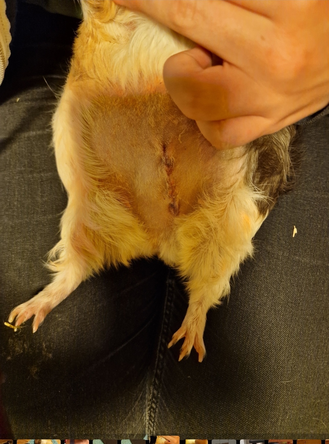 Die Tierärztin war regelrecht erschrocken über die Größe der Zyste und auch wie prall sie war. Ich persönlich kenne bei unseren Schweinchen 1,5-2,5 cm oft bei Zysten und das ist schon relativ groß, so im Verhältnis zum Schwein und eigentlich wäre da ja nichts.