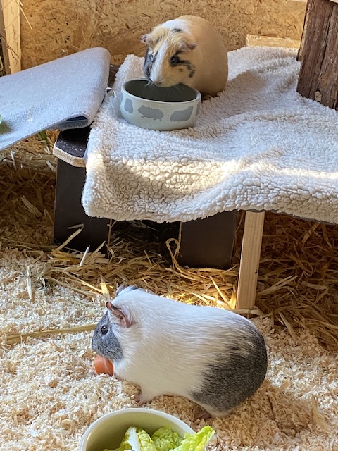 Ich denke, mein Fehler ist, daß ich immer zu viel frisches Futter mit mal anbiete. So haben sie keinen Anreiz, rauszukommen. Nach und nach werde ich die Häuschen entfernen und eine zweite Ebene bauen. Leider muss ich deswegen in die größere Stadt fahren, Material besorgen. So hat das Landleben seine Vor- undNachteile.