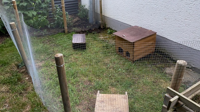 Zur Vergesellschaftung habe ich viel recherchiert. Wenn die Gruppe draußen ist, kann ich den Innenstall grundreinigen. Ich denke, das passt alles
