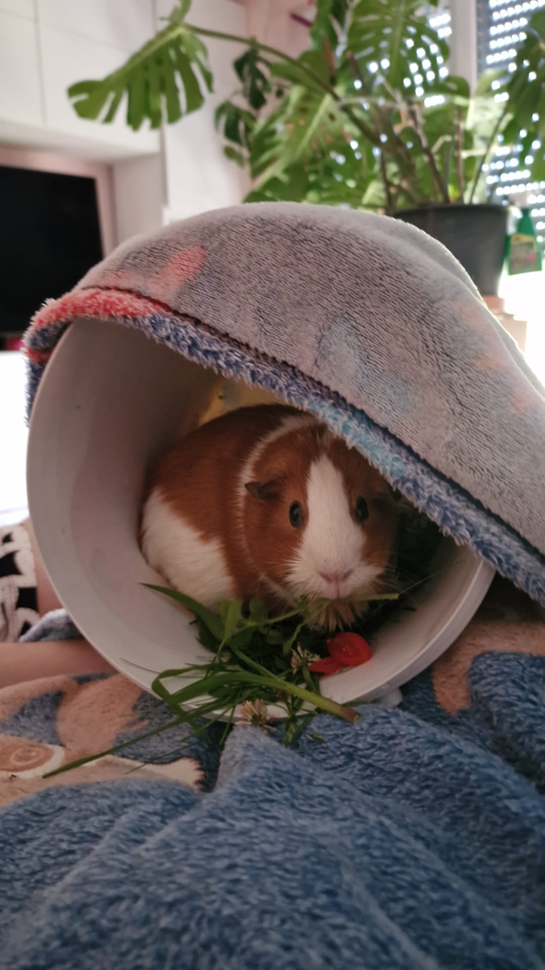 Das Blutbild war soweit typisch für eine Entzündung. Nur ihre Thrombozyten waren doppelt so hoch, was bei anderen Säugetieren bei einem Entzündungsgeschehen passiert, bei Meerschweinchen wohl typischerweise nicht, würden sie aber erstmal darauf schieben. Das wird nochmal kontrolliert. Ihre Nierenwerte sind wieder im Normalbereich! ![]()