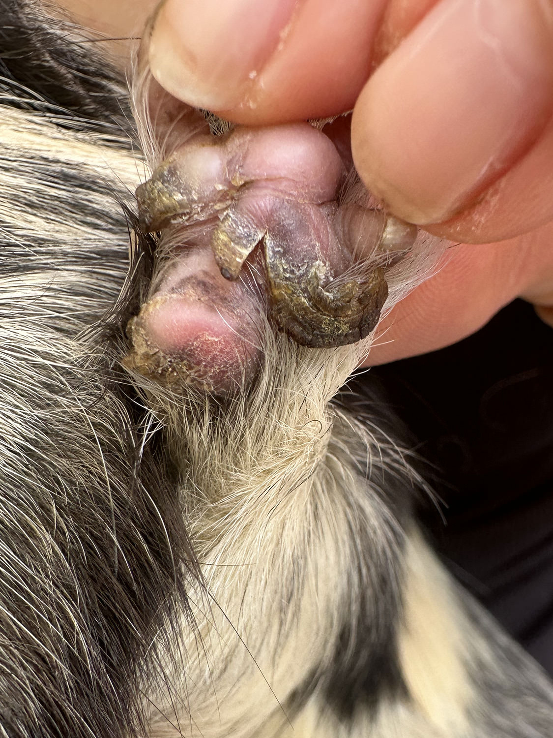 Es ist mir tatsächlich bisher nicht aufgefallen, wahrscheinlich weil ich die Krallen jeweils mehr von oben anschaue und kontrolliere und nicht den Fussballen anschaue.