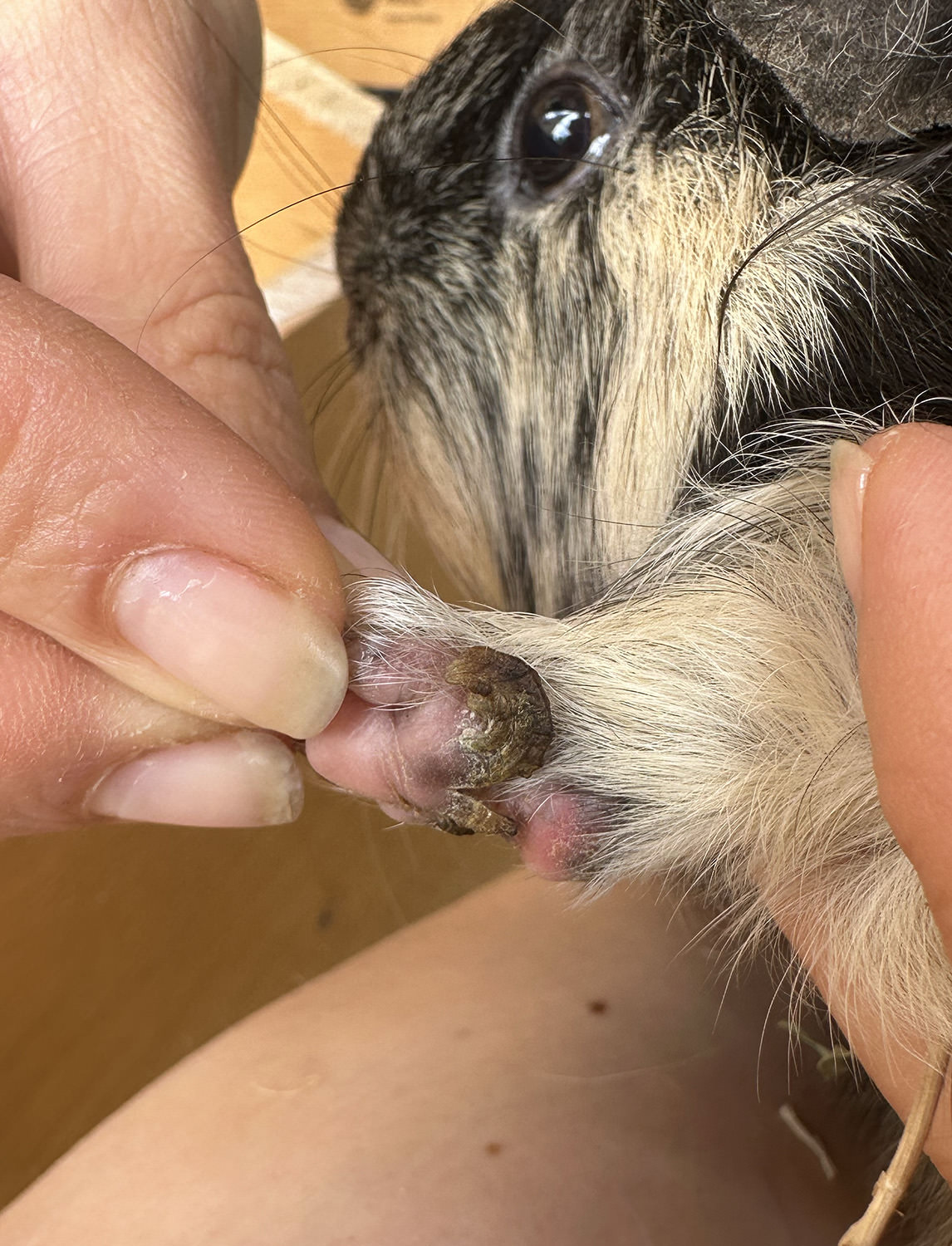 Ach herrjeh, heute beim wiegen habe ich bei Helena diese ganz seltsamen Wuchungerungen an den beiden Vorderpfoten (an der dunklen Pfote weniger ausgeprägt wie an der hellen) entdeckt