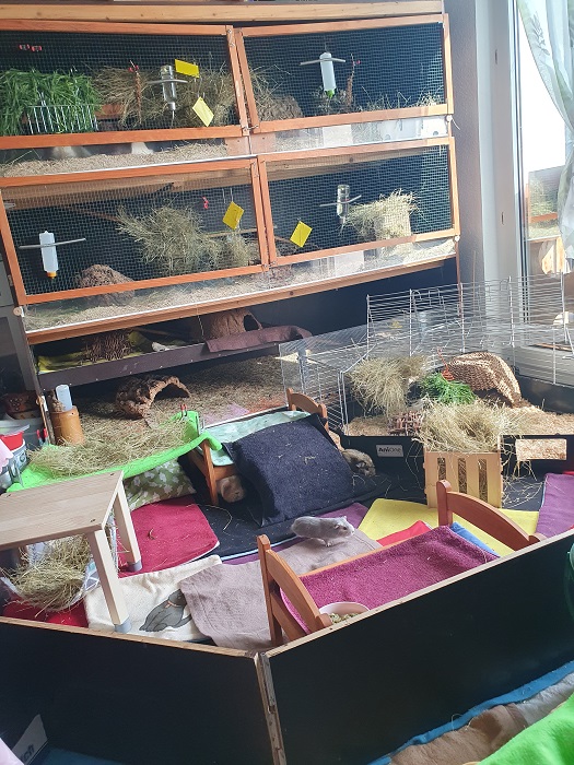 • Vielen Dank für die tollen Fotos. Bei euch sieht es super gemütlich aus. Mit so vielen Meerschweinchen geht euch die Arbeit sicher nie aus. Ich finde es total toll, dass ihr Tieren aus dem Tierschutz ein Zuhause gebt.