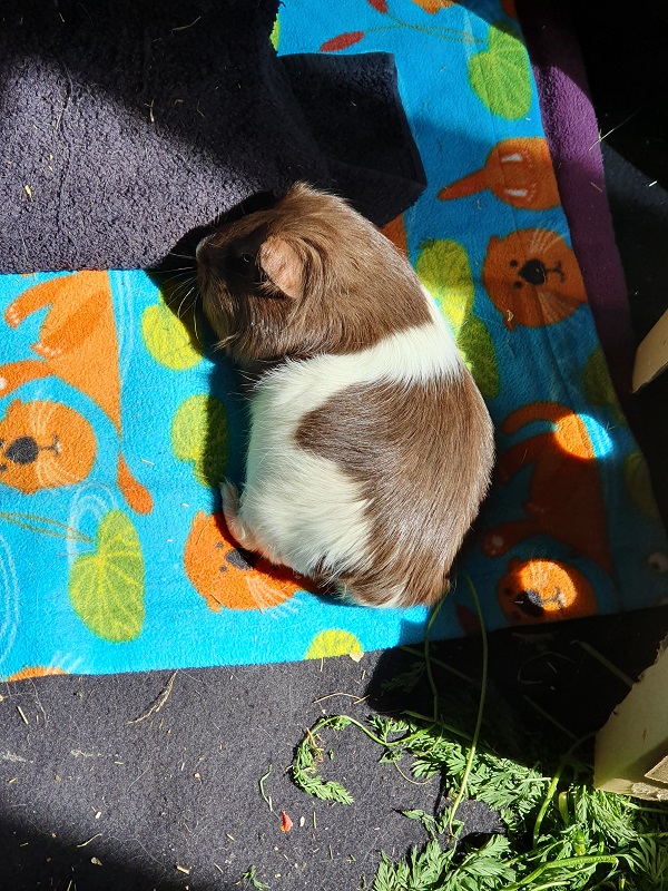 Bild 4 Anis unser Angstschweinchen und Kümmels Mama, sie hat sich zwar schon deutlich gebessert aber Vorsicht ist immer noch ihr oberstes gebot. Bei großem Stress kriecht sie manchmal unter die Pipipads (Kuscheltunnel usw werden ignoriert es muss unter ein Pipipad sein) weswegen wir an bestimmten stellen 2 Lagen haben mit sie dennoch trocken liegen kann.