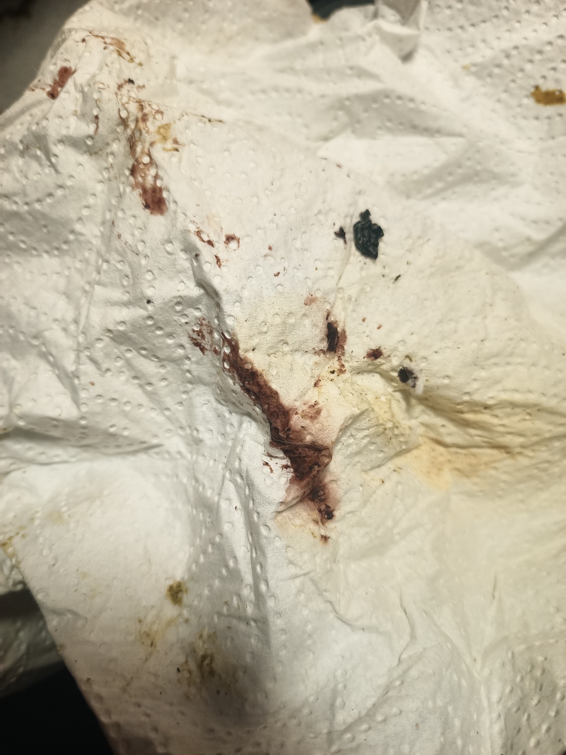• Auf dem Bild könnte das auch Durchfall sein. Falls Du das Stück Küchenpapier oder worauf es war, noch aufgehoben hast, sollte das nach einigen Stunden brauner werden, wenn es Blut ist.