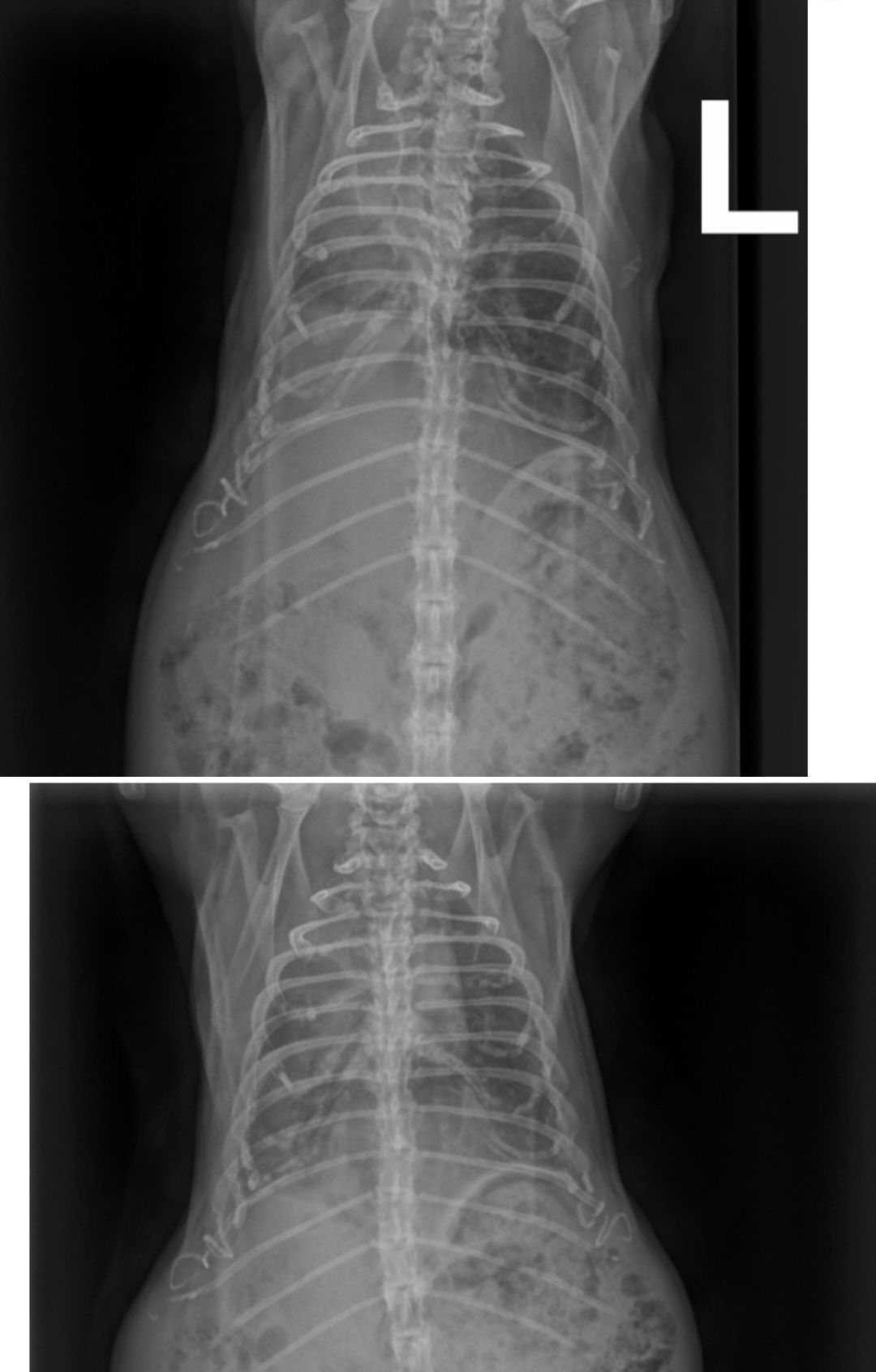 Um Röntgenbilder möglichst immer mehr zu verstehen, wage ich mal eine Interpretation und bitte um Korrekturen oder Ergänzungen. Der Tierarzt hatte die Aufnahmen ja sicherlich mit Dir besprochen.