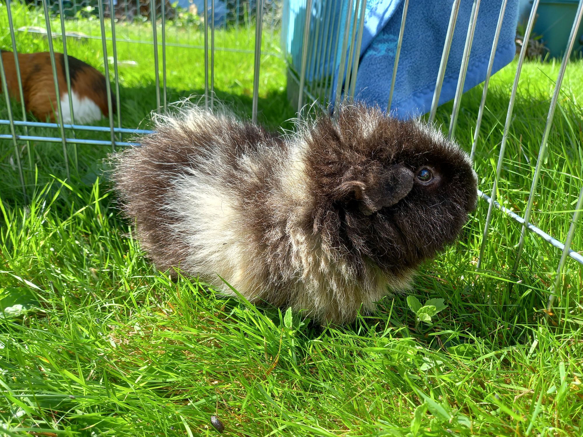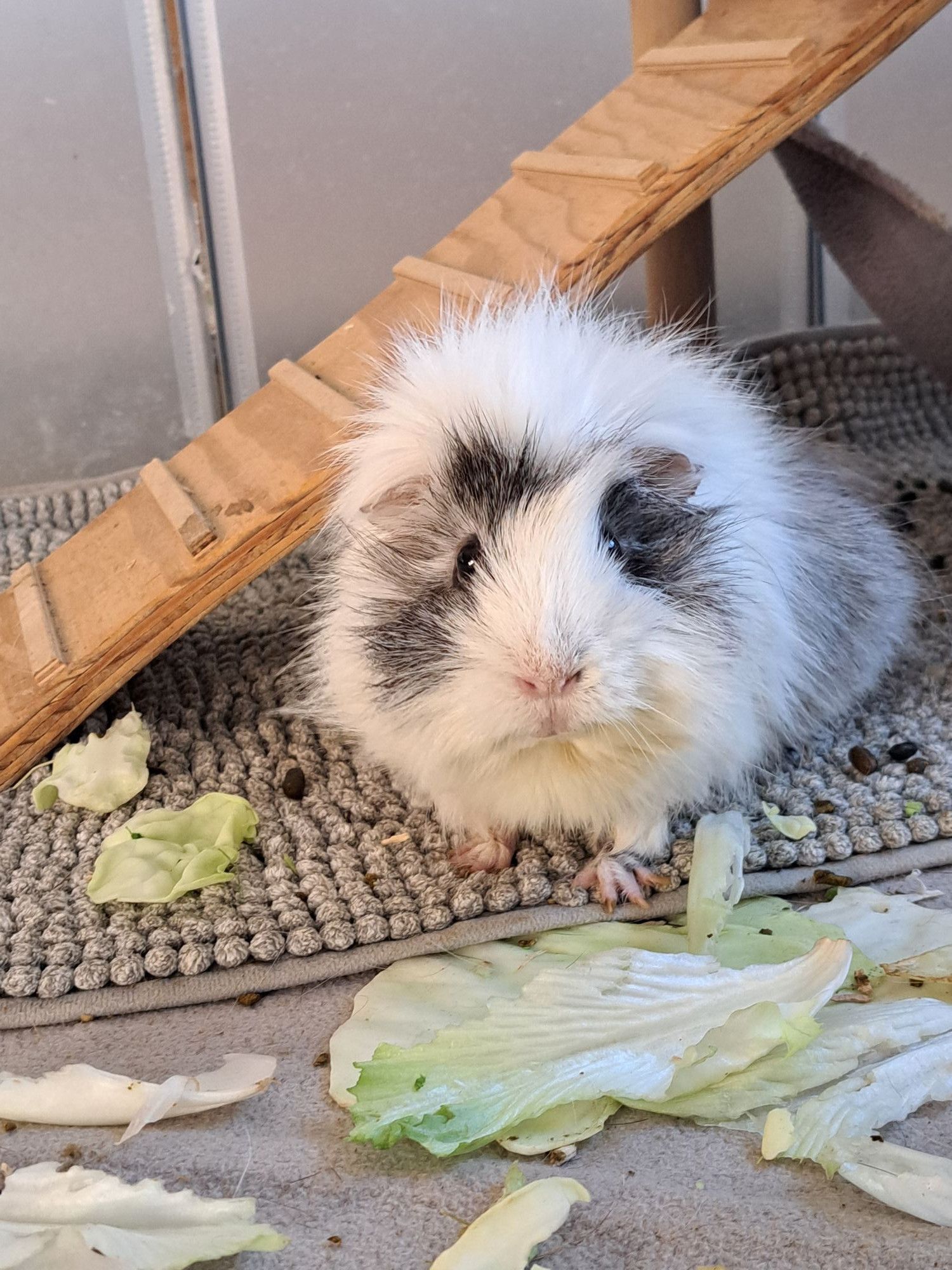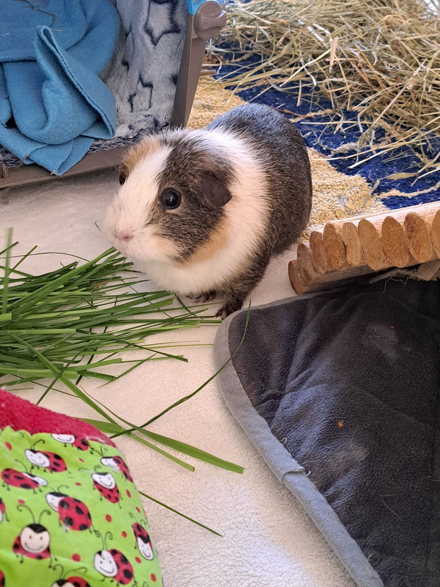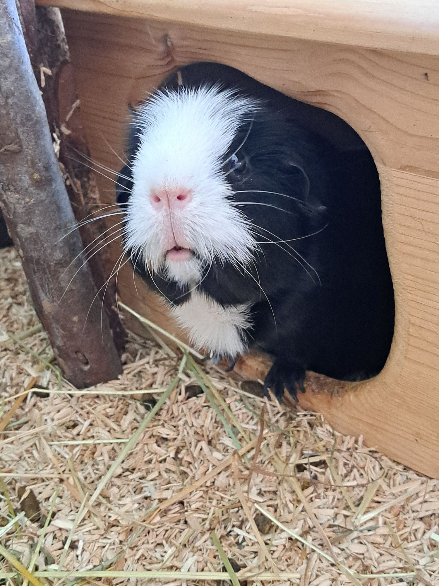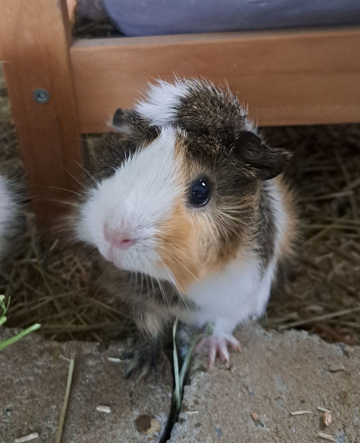 Aber ja, ich war auch überrascht wie sie da aus der Box spaziert ist und sich direkt alles angeschaut hat. Insbesondere da sie aus Außenhaltung stammt, normal brauchen diese Schweinchen immer nochmal länger und verkriechen sich lieber, wenn jemand in der Nähe ist.