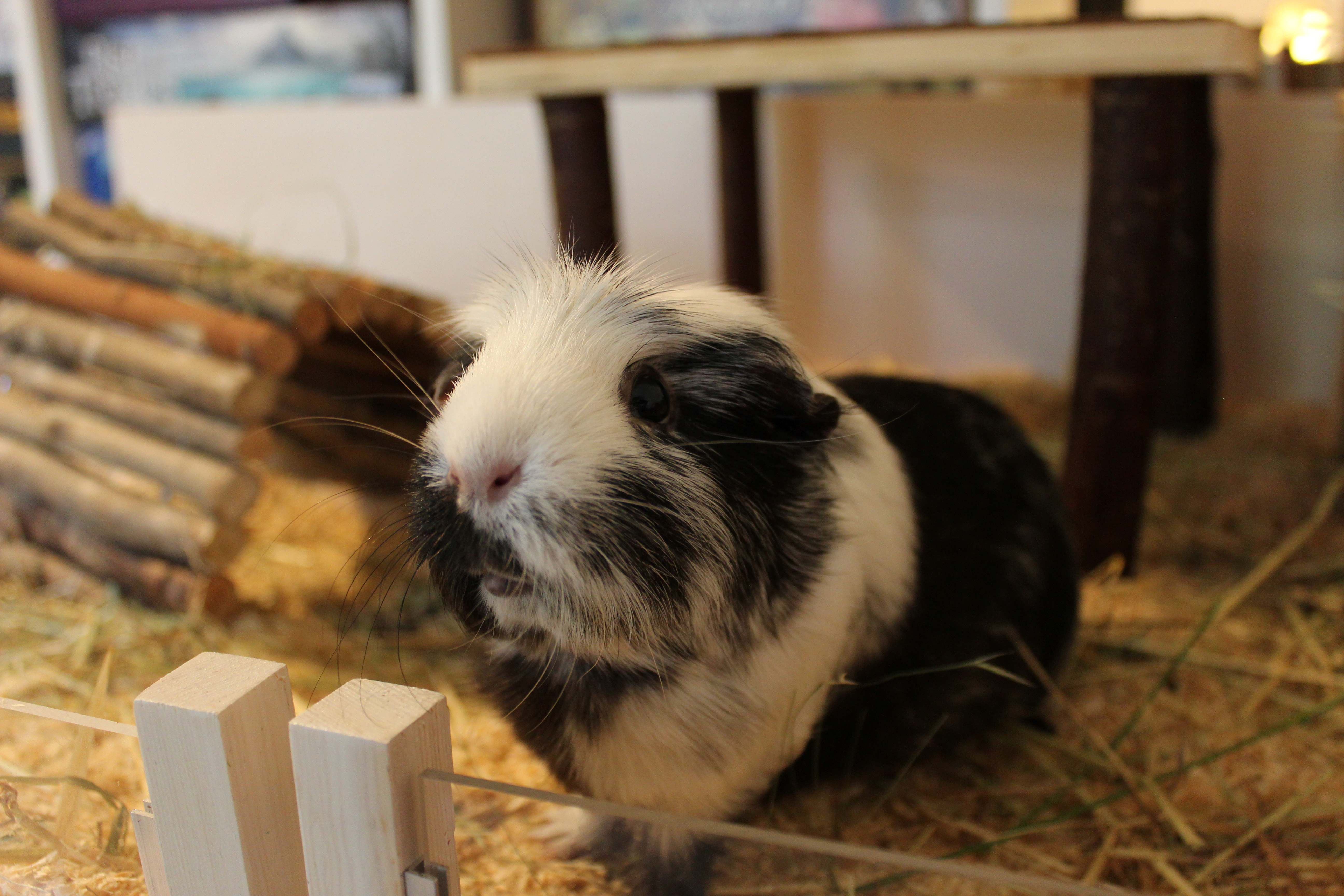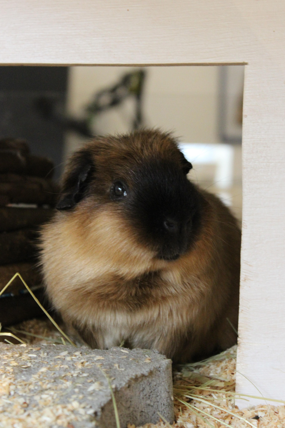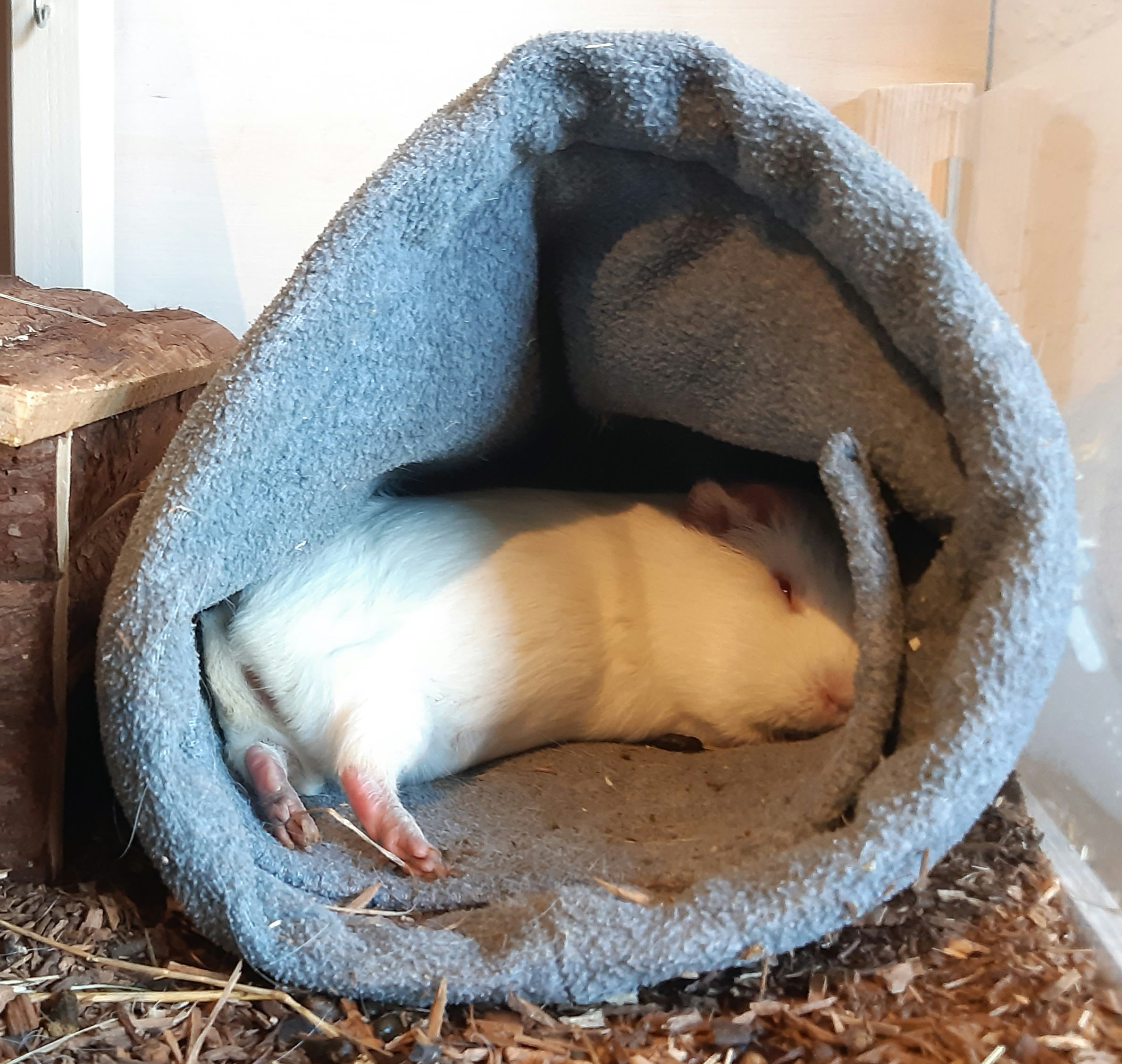 Spooky, Jahrgang 2024, ist ein ehemaliges Laborschweinchen und der Jungspund. Entsprechend flitzt sie viel herum, springt auf alles rauf und hat nur Unsinn im Kopf. Sie ist ein sehr mitteilungsfreudiges Schweinchen und kann am lautesten quieken. Sie ist so voller Freude und Energie, es ist einfach schön ihr zuzusehen.