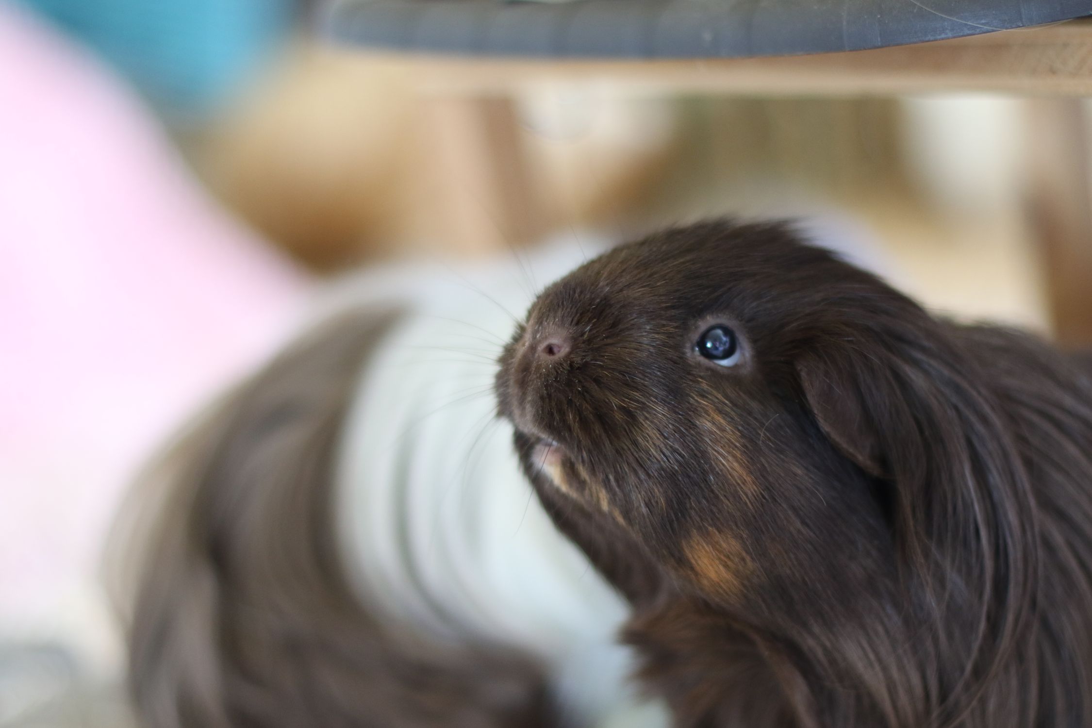 Das kleine Öz. Sie ist ein sehr sensibles, schüchternes, sozial unfähiges, aufdringliches,... Schwein. Özelchen vereint so ziemlich alle Gegensätze in sich und ist davon oftmals selbst verwirrt. Sie ist in der Gruppe relativ unsicher, aber es ist deutlich besser geworden, sie wurde ziemlich von Luna gemobbt, wenn man bei Schweinchen von einem Trauma sprechen kann, würde ich sagen, dass sie davon leicht traumatisiert wurde, denn jedes Mal, wenn sie sich überfordert gefühlt hat (dafür reichte aus, dass ein Schweinchen sich näherte, sie berührte oder sie einfach nur in einer Ecke war), hat sie angefangen zu schreien und ist komplett erstarrt. Aber das Özelot ist noch so viel mehr. Sie ist dem Menschen sehr zugewandt, lässt sich streicheln, kommt auf den Schoß, wenn man sie lockt, hasst Colosan über alles (und dich dann auch), liebt Hängematten, frisst nichts lieber als Erbsenflocken, hört mehr oder weniger auf ihren Namen und liebt dich mehr als alles andere, wenn du lieb zu ihr bist.