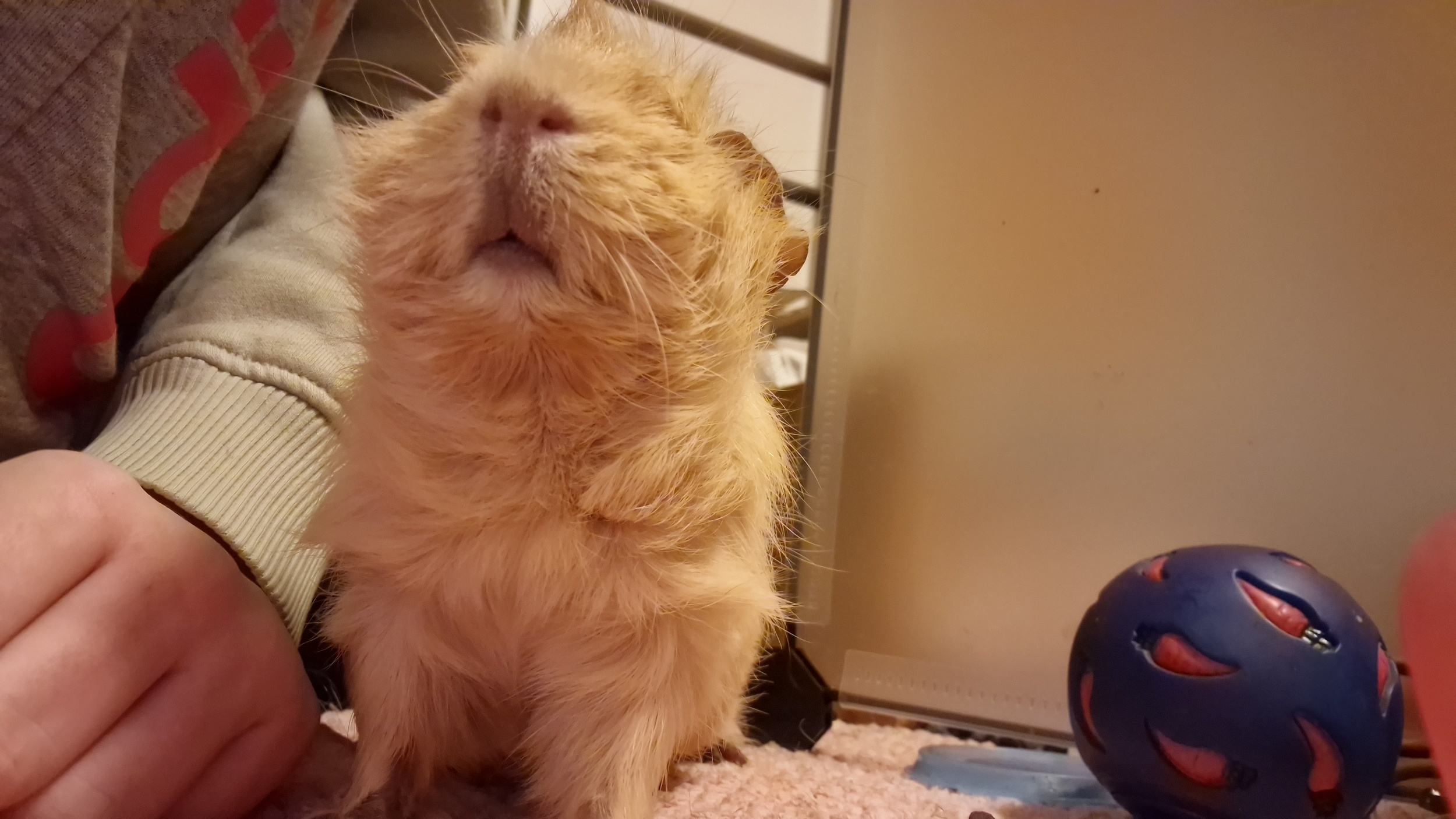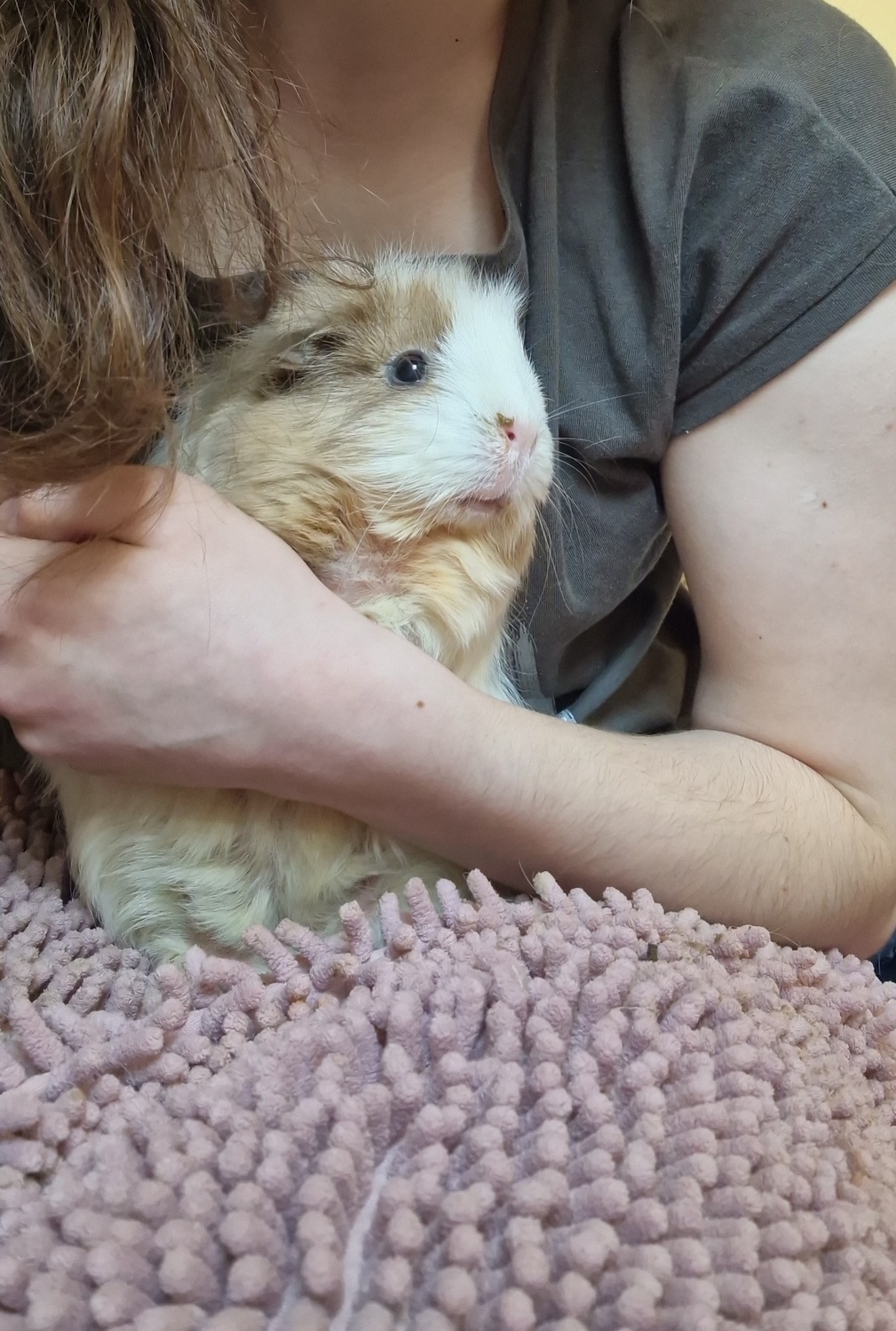 Aber zu Fienchen selber, sie ist vom 20.08.22 und eine Rosette in der Farbe Creme. Sie kam in die Nothilfe und war zu dem Zeitpunkt ziemlich nackt und sehr sexuell aktiv. Sie hat aktuell eine Ovogest-Behandlung hinter sich. Am Freitag wird sie geschallt um Entscheidungen bezüglich ihrer Zukunft machen zu können. Wir haben sie als Hospizi von der Nothilfe übernommen und sind jetzt somit offiziell Hospizpflegestelle von der Meerschweinchennothilfe Hamburg, was mich sehr freut.