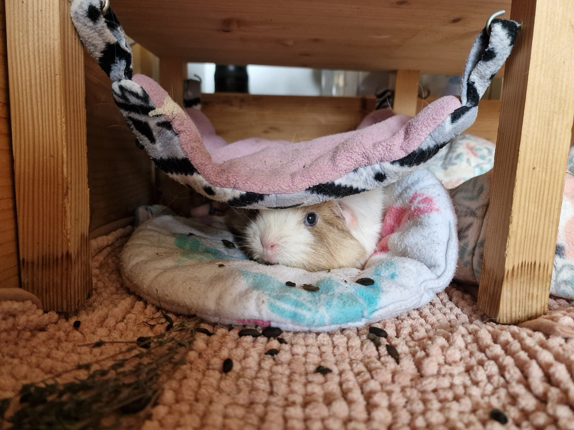 Bönsch kriegt nun schon etwas länger ihr Prilium. Vor etwa zwei Wochen ging es ihr Freitag richtig gut, doch Samstag rutschte sie ab😢 Ich setzte dennoch das Prilium an. Dienstag ging es dann wieder bergauf. Für Außenstehende hätte sie vermutlich dauerhaft normal gewirkt, aber man kennt sie dann ja irgendwann. Ihr könnt jetzt dreimal raten, was ich bei Bonnie nach Gefühl getestet hatte, und was rausgekommen ist... Ebenfalls ohne jegliche Anzeichen. Sie war übrigens die erste, dann Luna, und jetzt zwei Wochen später Lulu. Ich sag da mal nichts zu...🥲 Seitdem geht es ihr aber relativ konstant besser, was mich natürlich SEHR freut🥳 Ihr gut ist natürlich nicht mit einem gesunden Schweinchen zu vergleichen, aber ich frage mich nicht mehr dauerhaft, ob ihr Leben lebenswert ist, und sie belagert mich leidenschaftlich gerne❤️ Ich würde dennoch eigentlich gerne Metacam bei ihr ansetzen, aber da hab ich doch etwas Bauchschmerzen. Unsere Tierärztin empfahl erstmal die Blasenentzündung abzuwarten. Aber Bönsch streckt sich oft auffällig nach dem Schlafen und quieckt dabei. Ich würde einfach gerne ausprobieren, ob ihr das hilft. Aber wie gesagt, ich weiß nicht, ob ich ihr damit einen Gefallen tue...🥺