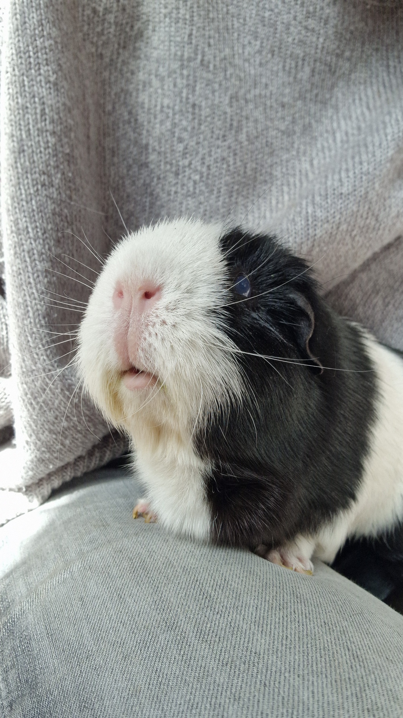 Man muss sagen, das mit Fienchen war schon nicht ganz uneigennützig. Sie ist einfach zuckersüß. Und als Hospiztier fällt die finanzielle Sorge mit. Ehrlicherweise ist sie auch eines der gesündesten Schweinchen hier... Noch ein Palliativschweinchen wäre nicht sinnvoll. Hab ja viel Kontakt mit der Nothilfe und besonders mit der Pflegestelle, wo sie herkommt und war schon seit ihrer Ankunft Ende Januar/Anfang Februar verliebt. Und es war für mich klar, wenn ein neues Schweinchen, dann ein Hospizi, wegen der finanziellen Entlastung. Krank sind sie irgendwie eh alle, und dann weiß ich zumindest ein wenig, was auf mich zukommt. Mit pflegen hab ich ja grundsätzlich kein Problem bzw. verhältnismäßig wenig. Und dann war klar, wenn ein Schweinchen, dann Fieni.