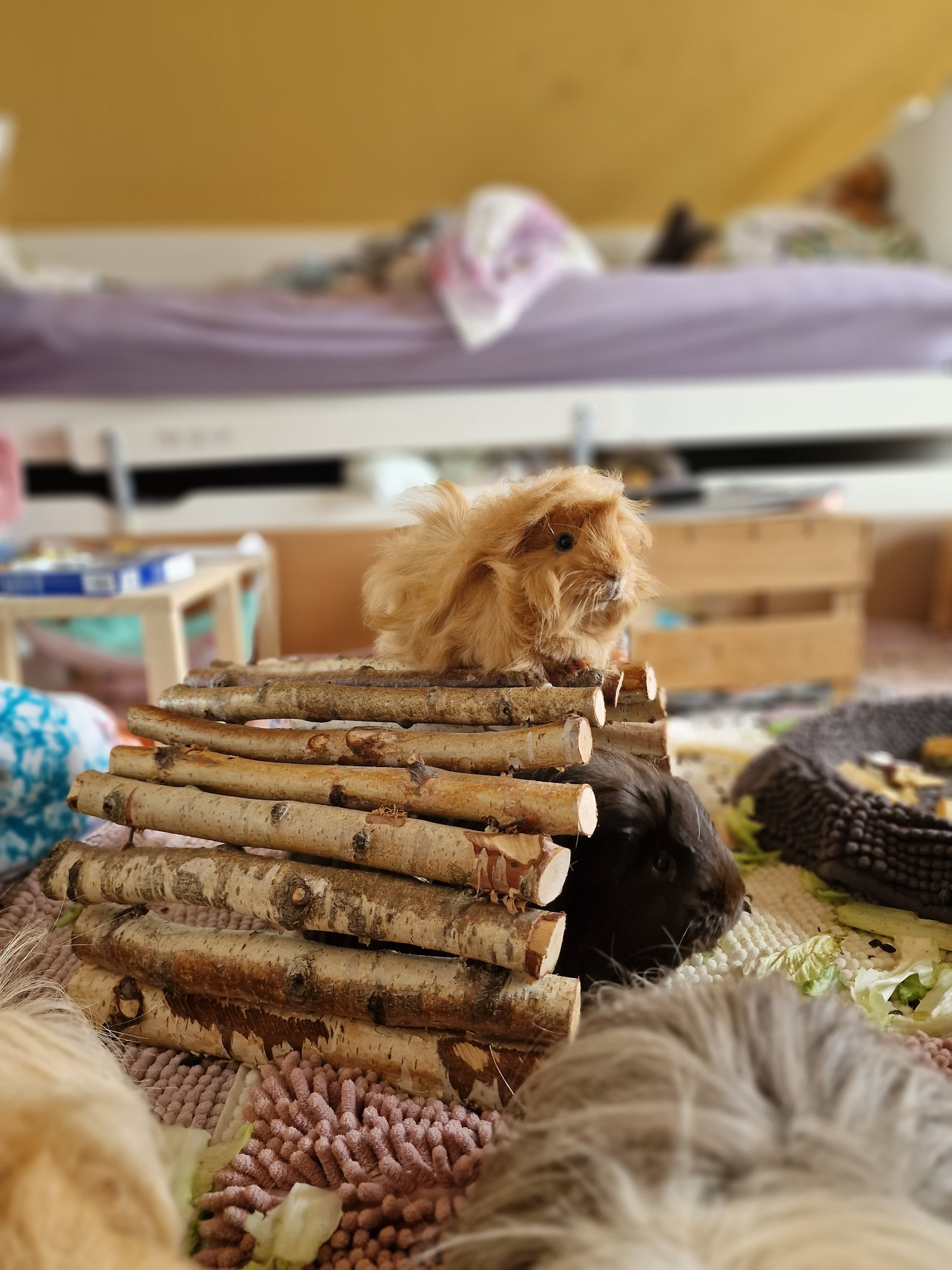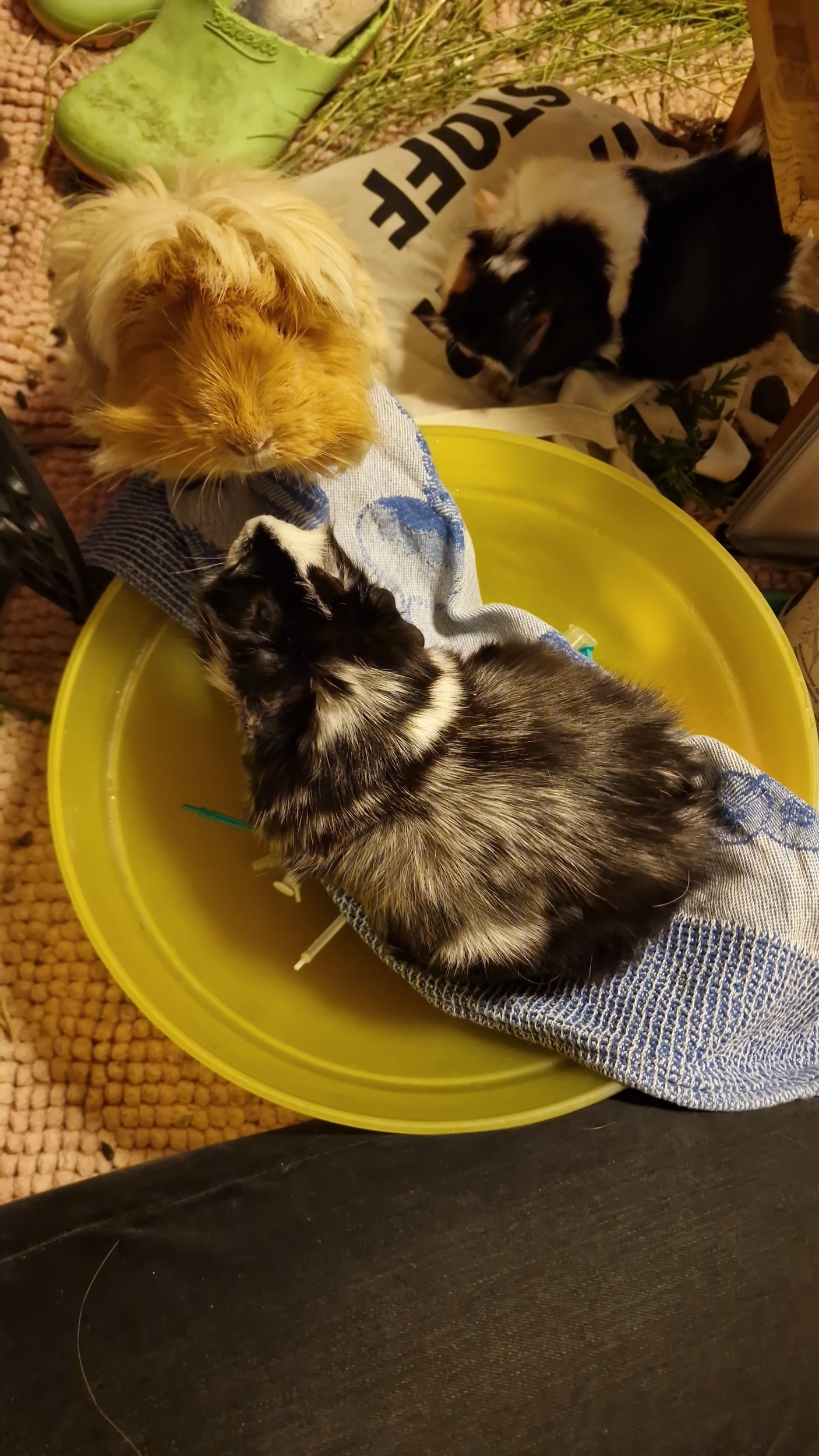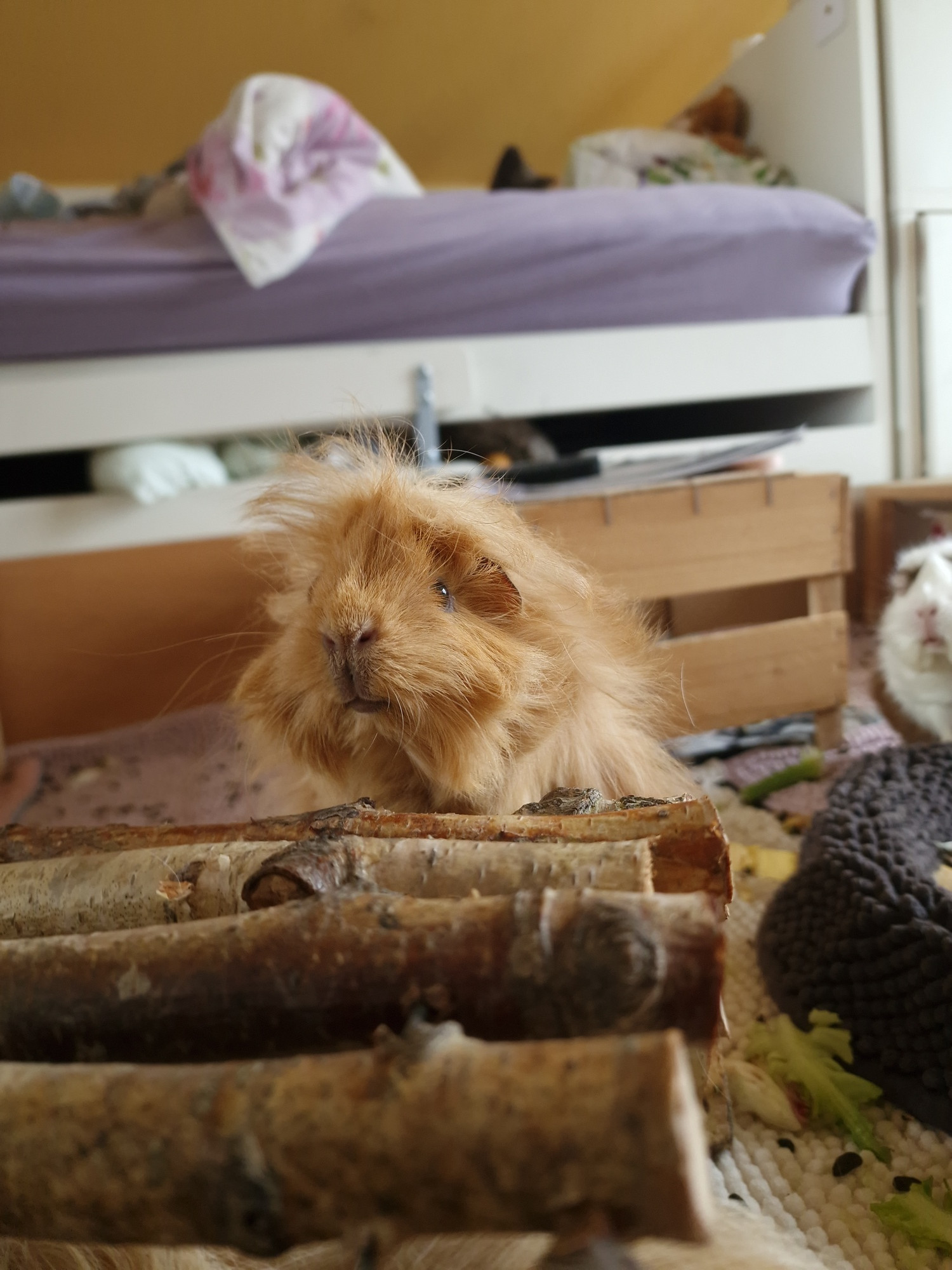 Dass mich das überrascht wäre eine Lüge, ich habe ja durchaus Beobachtungen gemacht, die eine klare Sprache sprachen. Trotzdem ist es hart... Er ist so jung. Mein kleiner Traum von einem Schweinchen, das von Anfang an nur Gutes erlebt, nur gut aufwächst. Ich kenne ihn über Videos und Bilder seit seiner Geburt, in echt zum ersten Mal nach ~5 Wochen gesehen und etwas später ist er eingezogen. Ich habe ihn aufwachsen sehen. Er war so ein toller Zweitkastrat, jetzt nochmal so aufgebläht alleine. Durch ihn ist meine Helgeline irgendwie noch da und ich habe mich getröstet, dass ich zumindest ihren Kindern ein langes, erfülltes Leben ermöglichen darf... Es ist gemein. Ganz leise ist da noch die Hoffnung, aber wenn wir realistisch sind... Ich lasse mich natürlich gerne vom Gegenteil überzeugen.