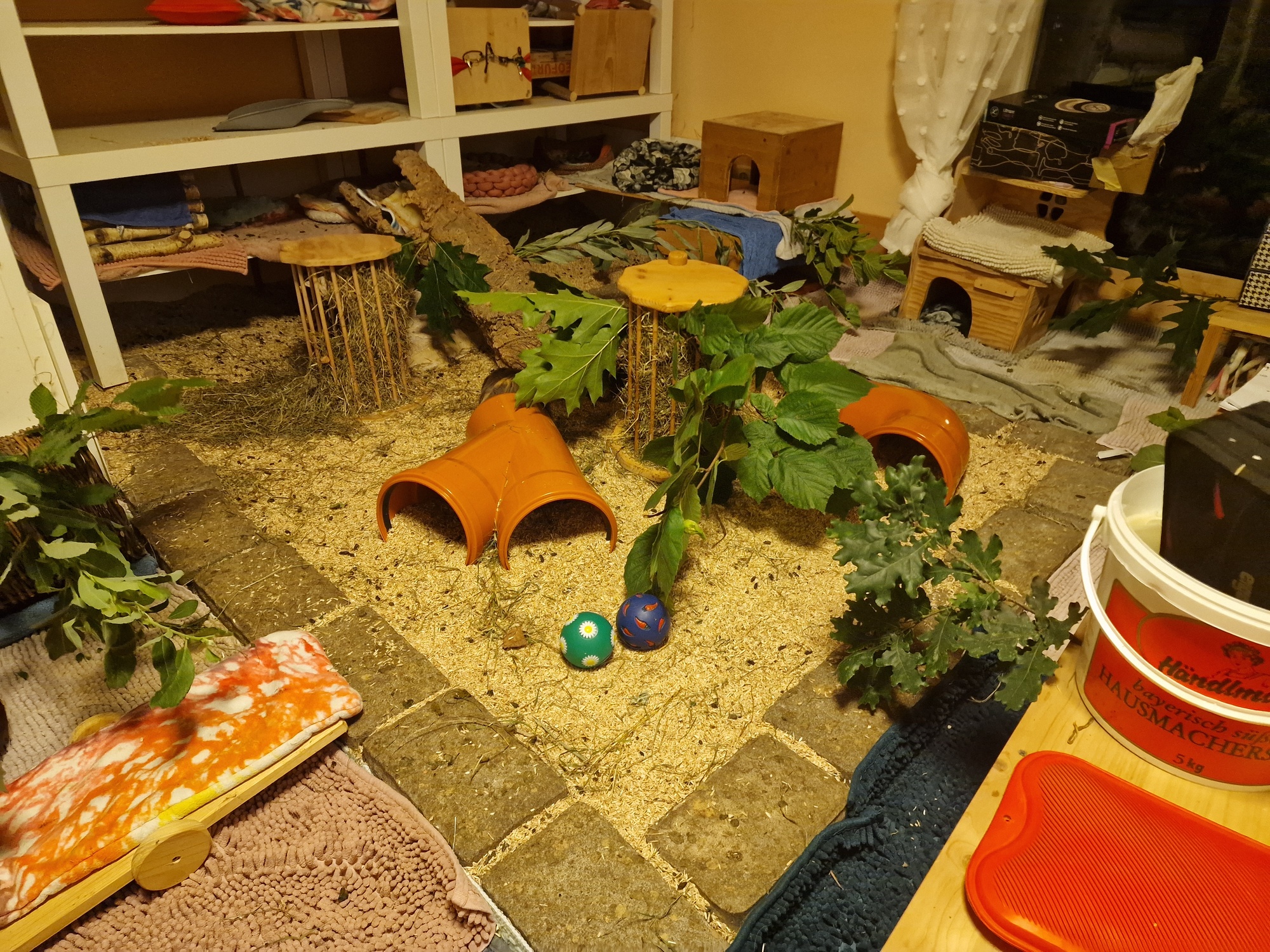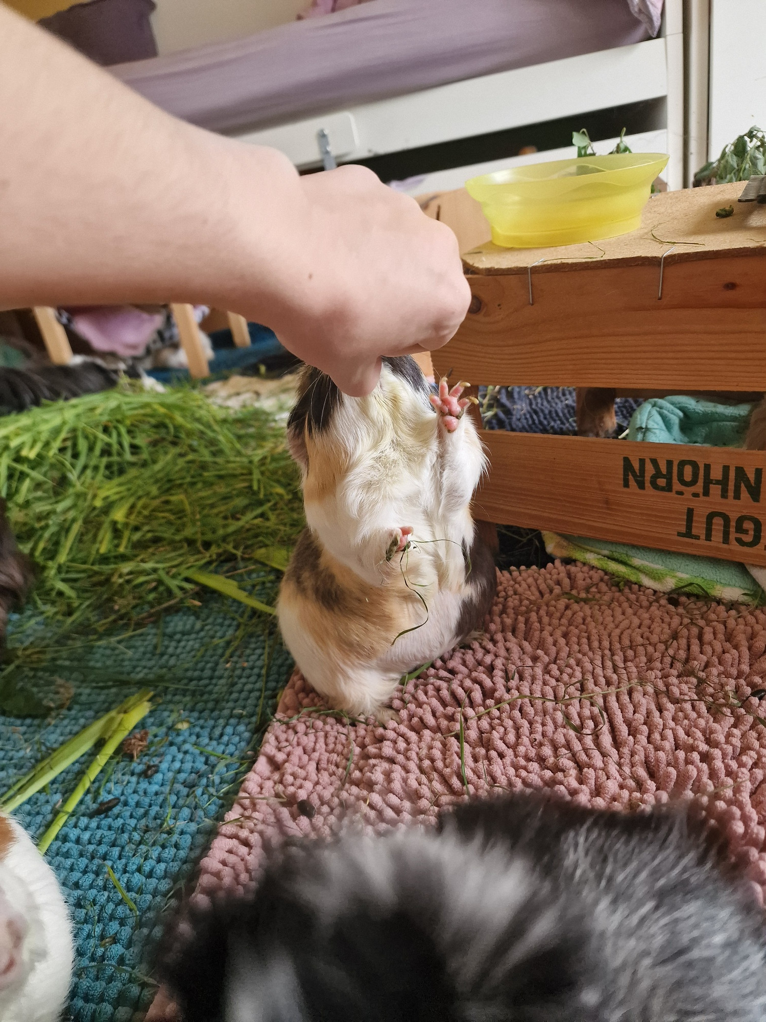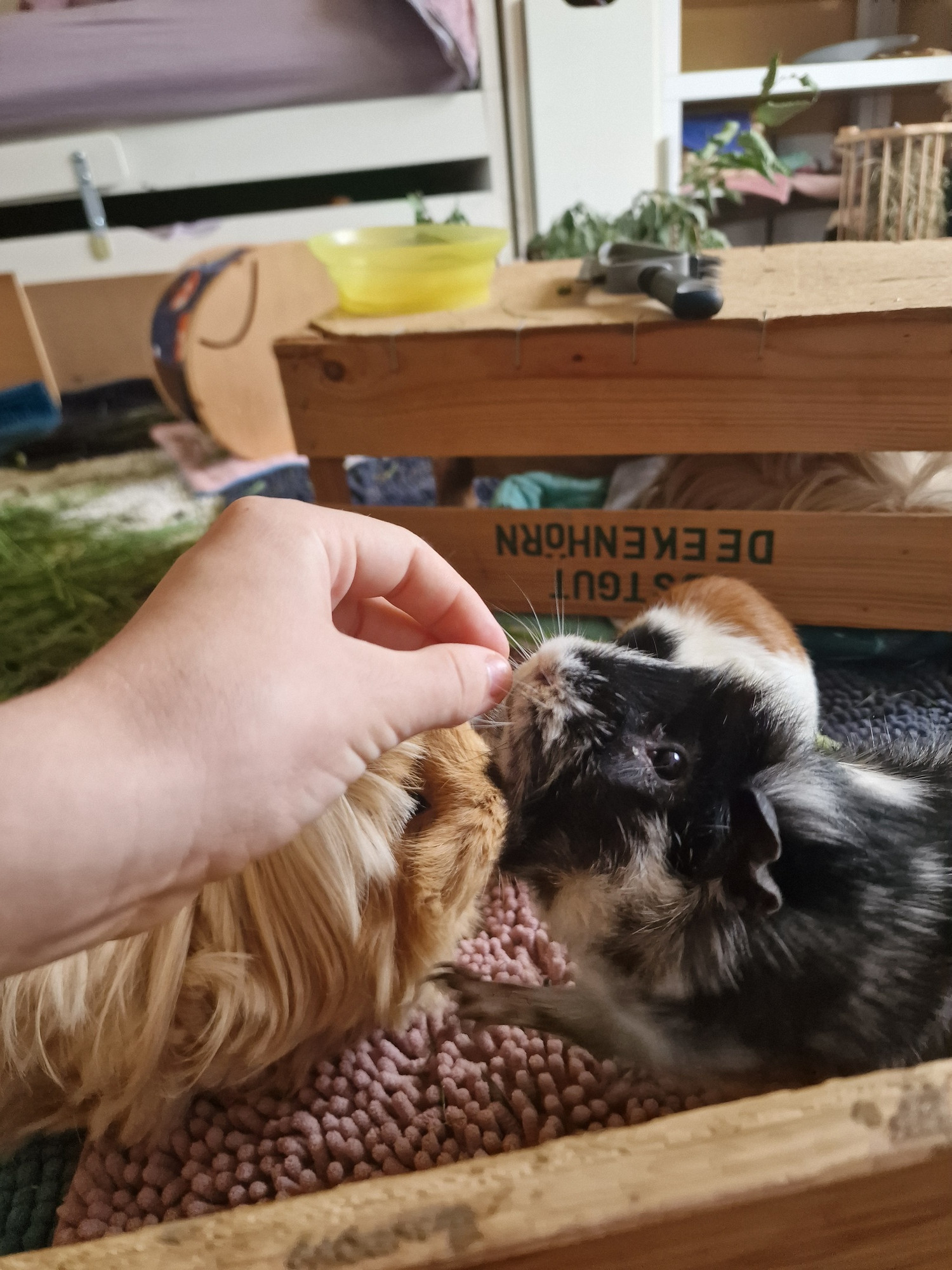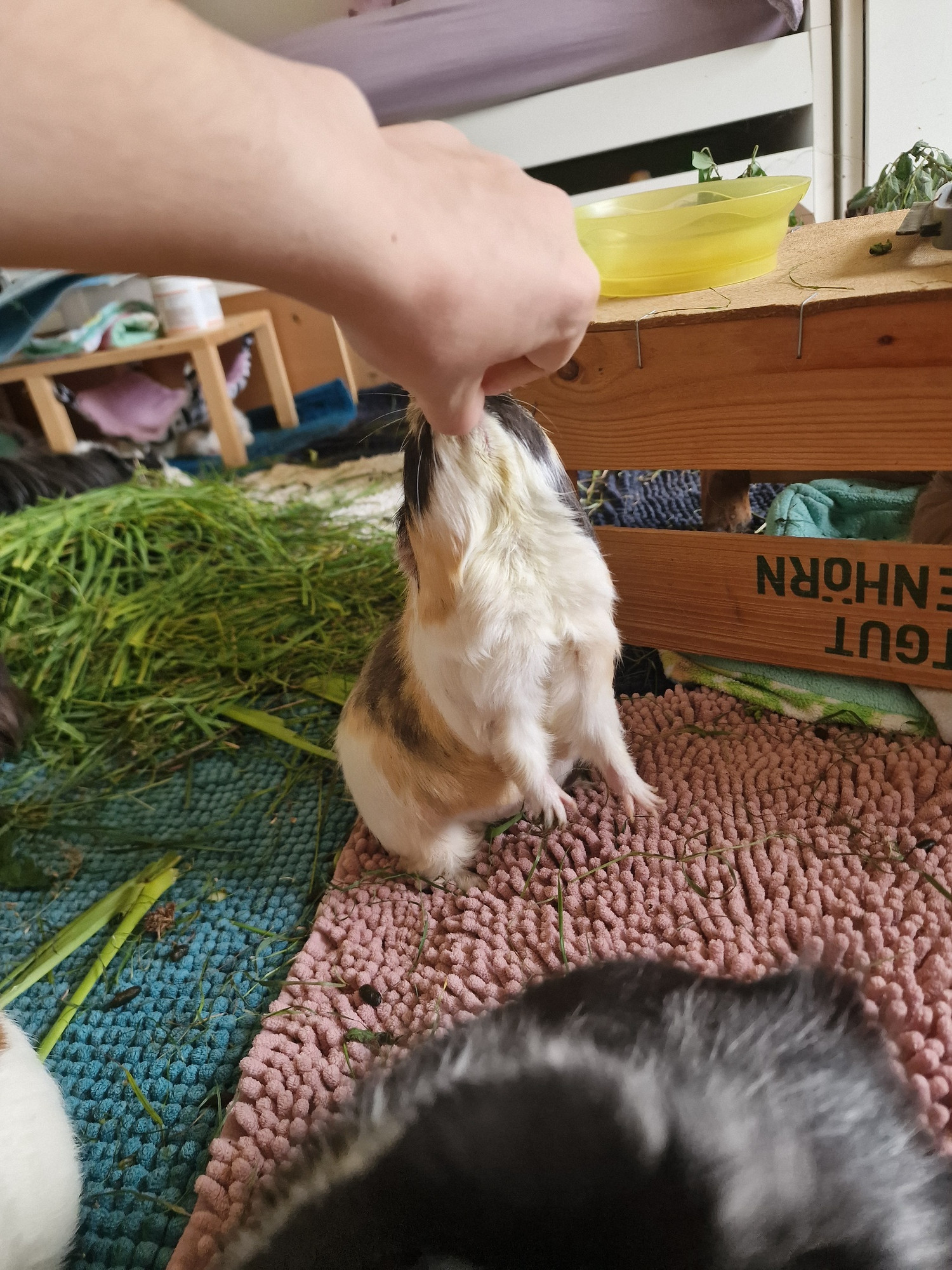 Wir haben Ozeana, Helga, Billy und Malu, die das bekommen oder bekommen haben. Friedel hat zwischendurch mit ihrer Pfote auch noch was genommen. Zudem ist die Flasche doof und es geht immer was verloren. Bisschen was ist auch noch drin, aber nichts was guten Gewissens noch reicht, ohne, dass ich dann doof dastehe, wenn das Metacam leer ist.