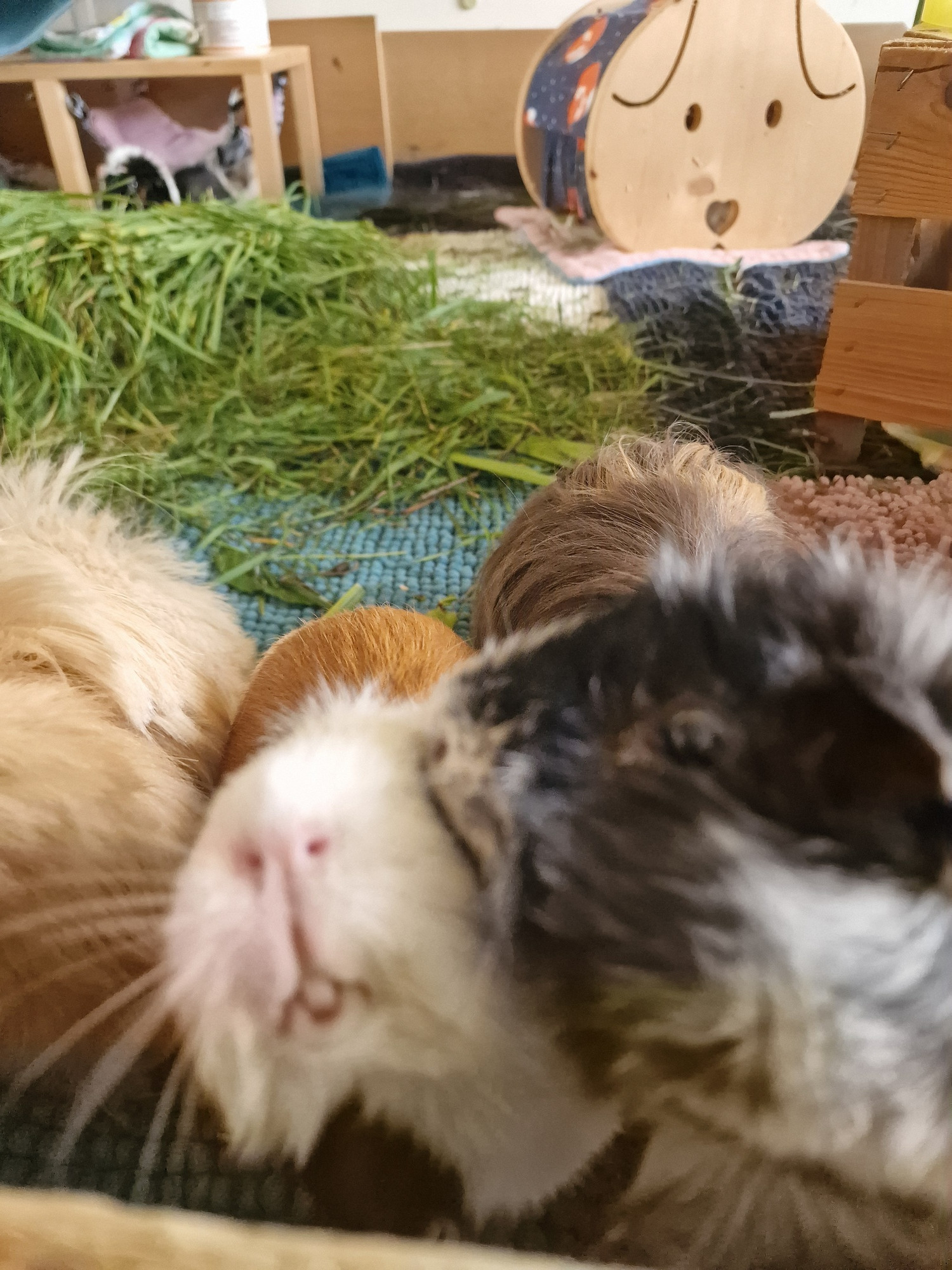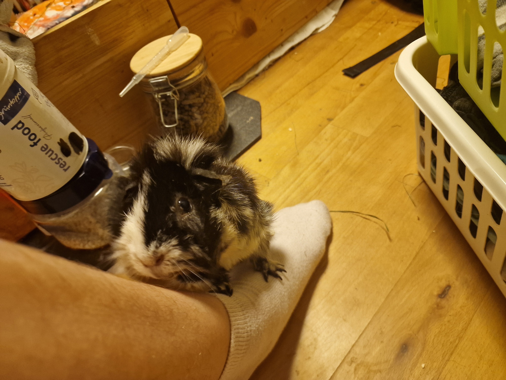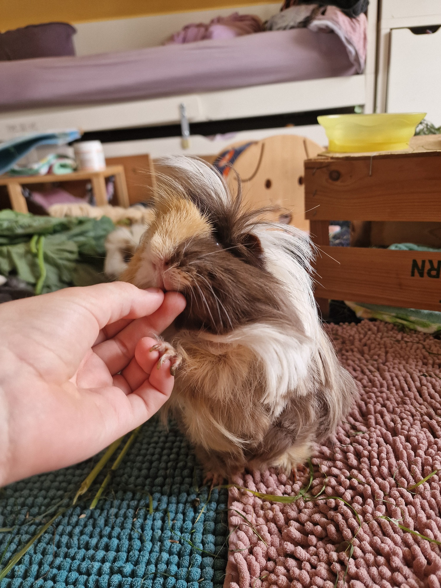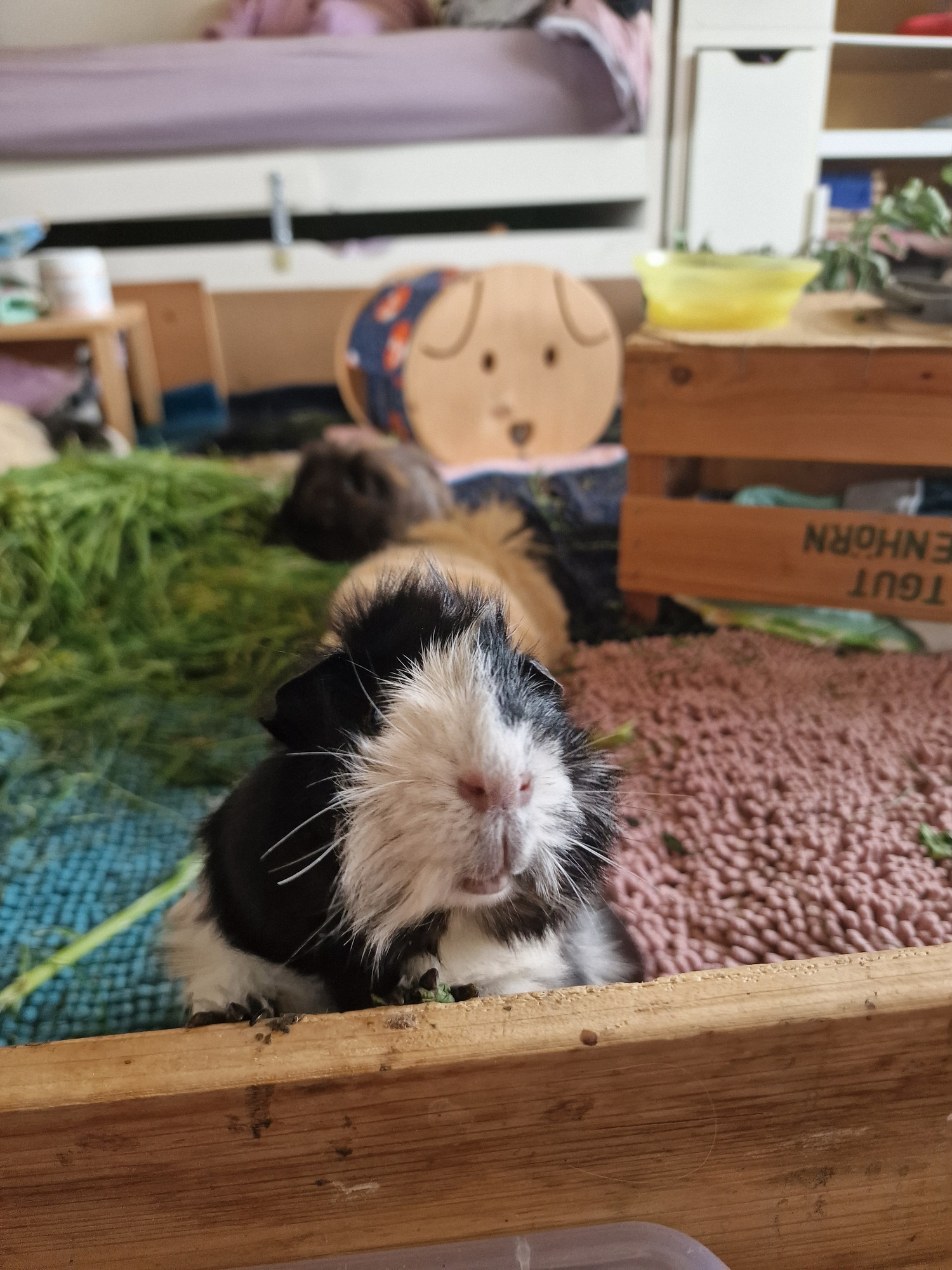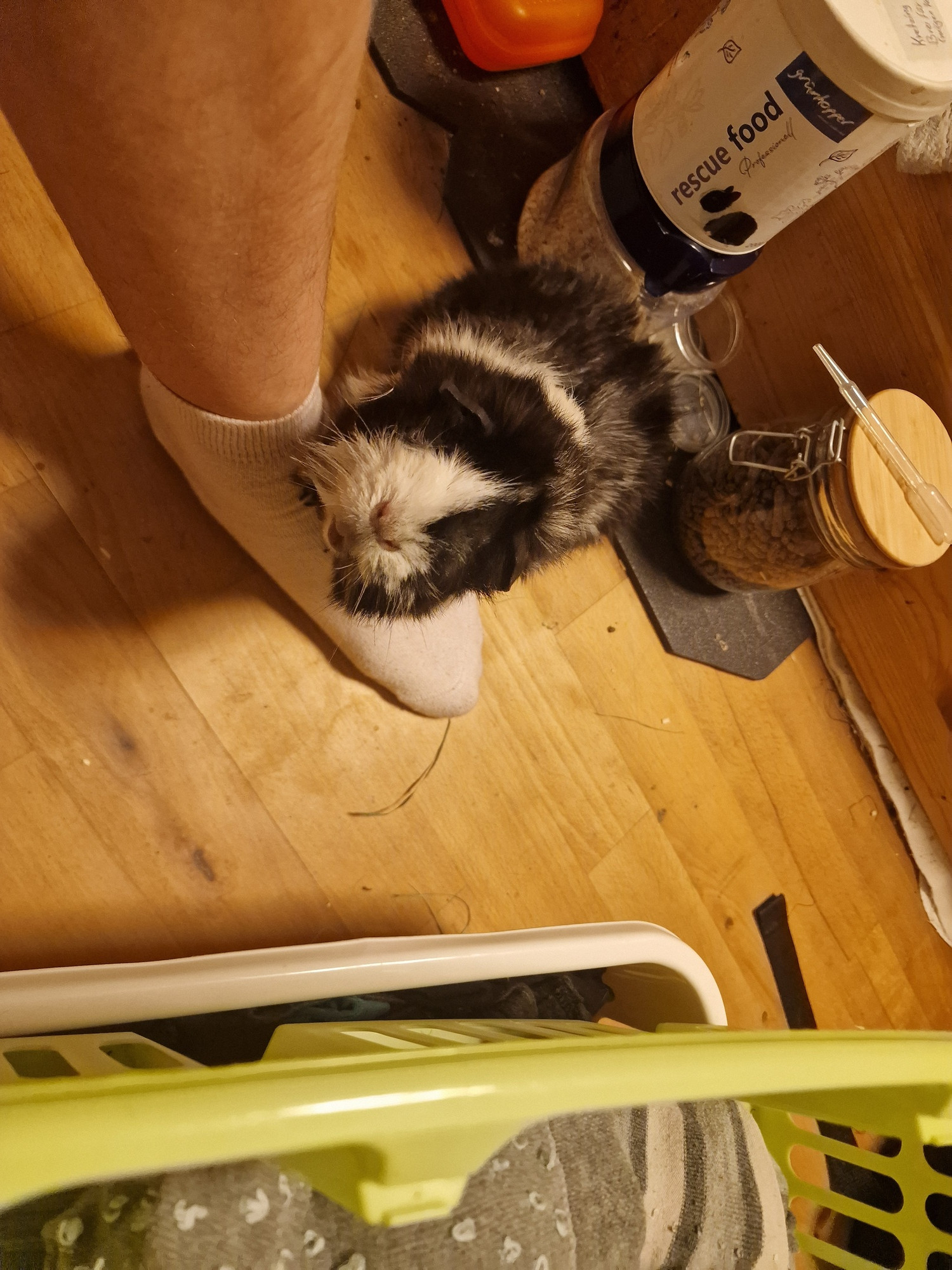 Wir haben Ozeana, Helga, Billy und Malu, die das bekommen oder bekommen haben. Friedel hat zwischendurch mit ihrer Pfote auch noch was genommen. Zudem ist die Flasche doof und es geht immer was verloren. Bisschen was ist auch noch drin, aber nichts was guten Gewissens noch reicht, ohne, dass ich dann doof dastehe, wenn das Metacam leer ist.