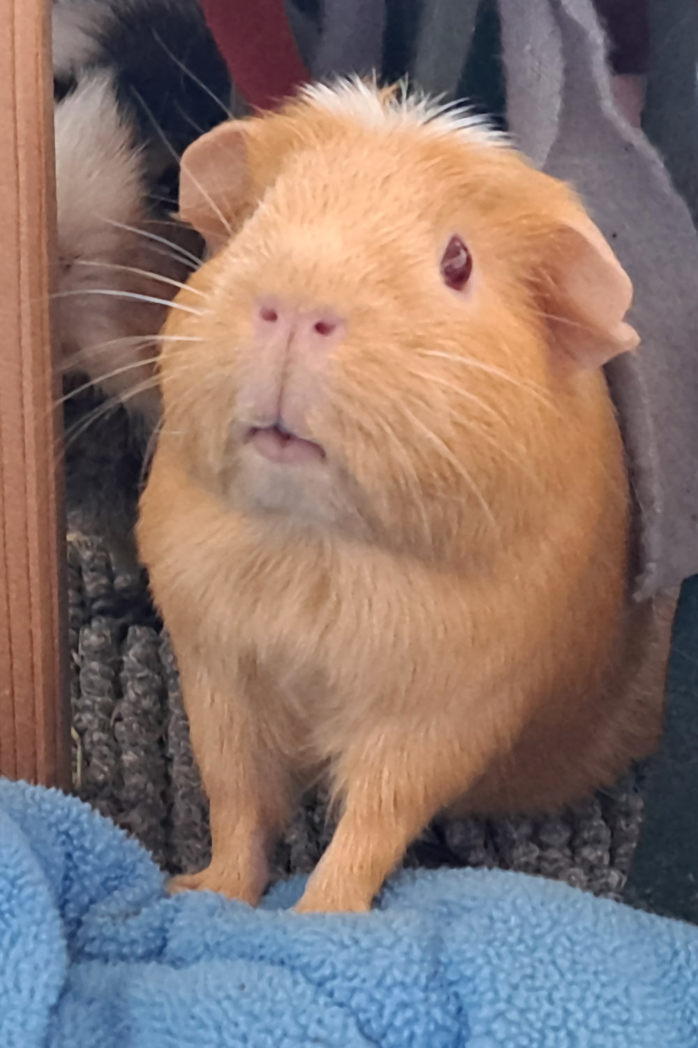 Nach einer Pause starte ich nun wieder mit zwei Meeris. Zwei Kastraten (keine Babys) die erst frisch in den neuen Eigenbau eingezogen sind und bei denen ich selbst noch beobachte, wie es so läuft. Bisher gut, doch mir ist natürlich bewusst, dass das nicht dasselbe wie ein Paar oder ein Harem ist. Es war nach reiflicher Überlegung der Wunsch, zwei Böckchen ein Zuhause geben zu können doch mit dem Bewusstsein, dass daraus auch eine (bz 2) Haremsgruppen resultieren "müssen" könnten.