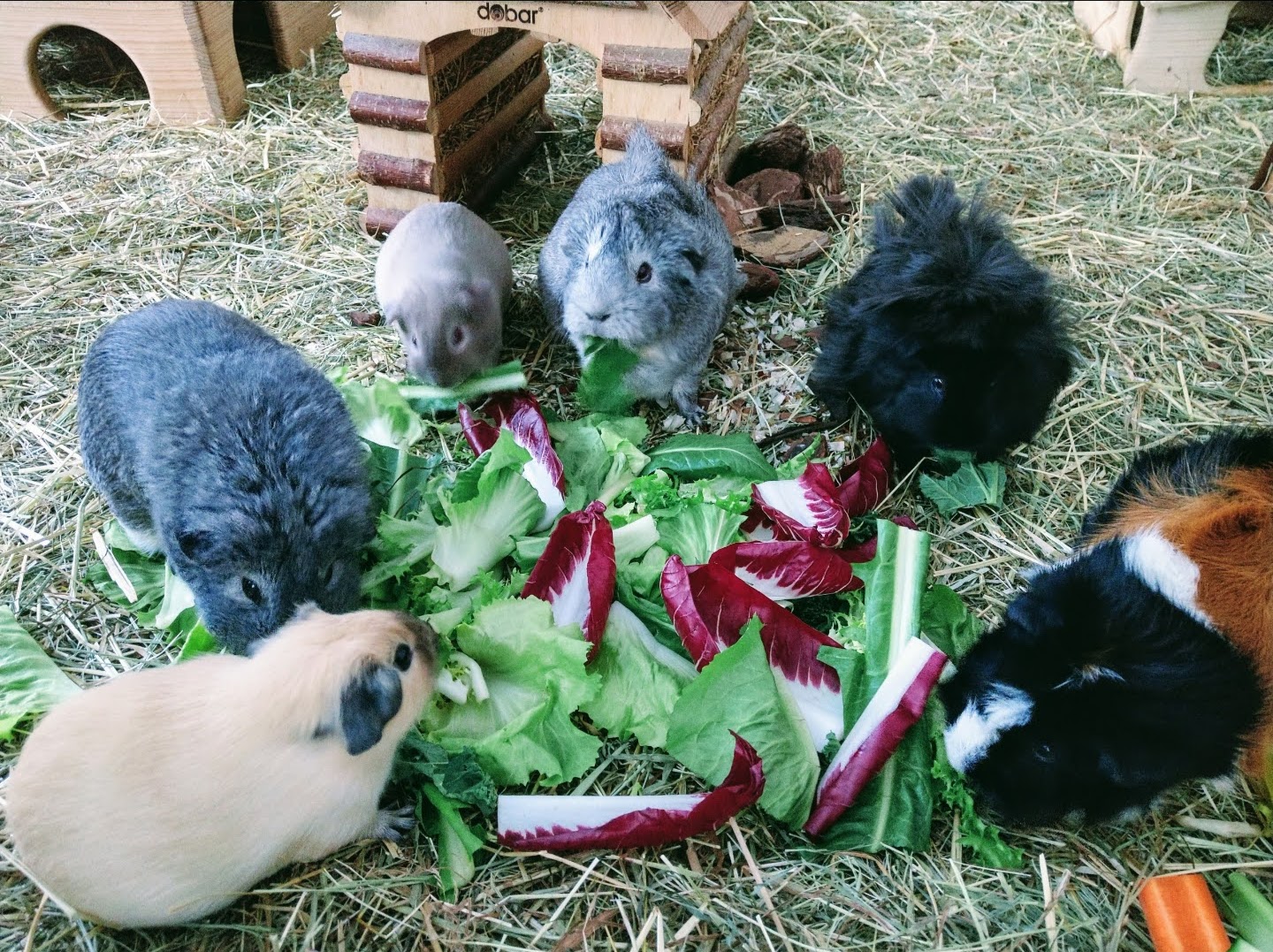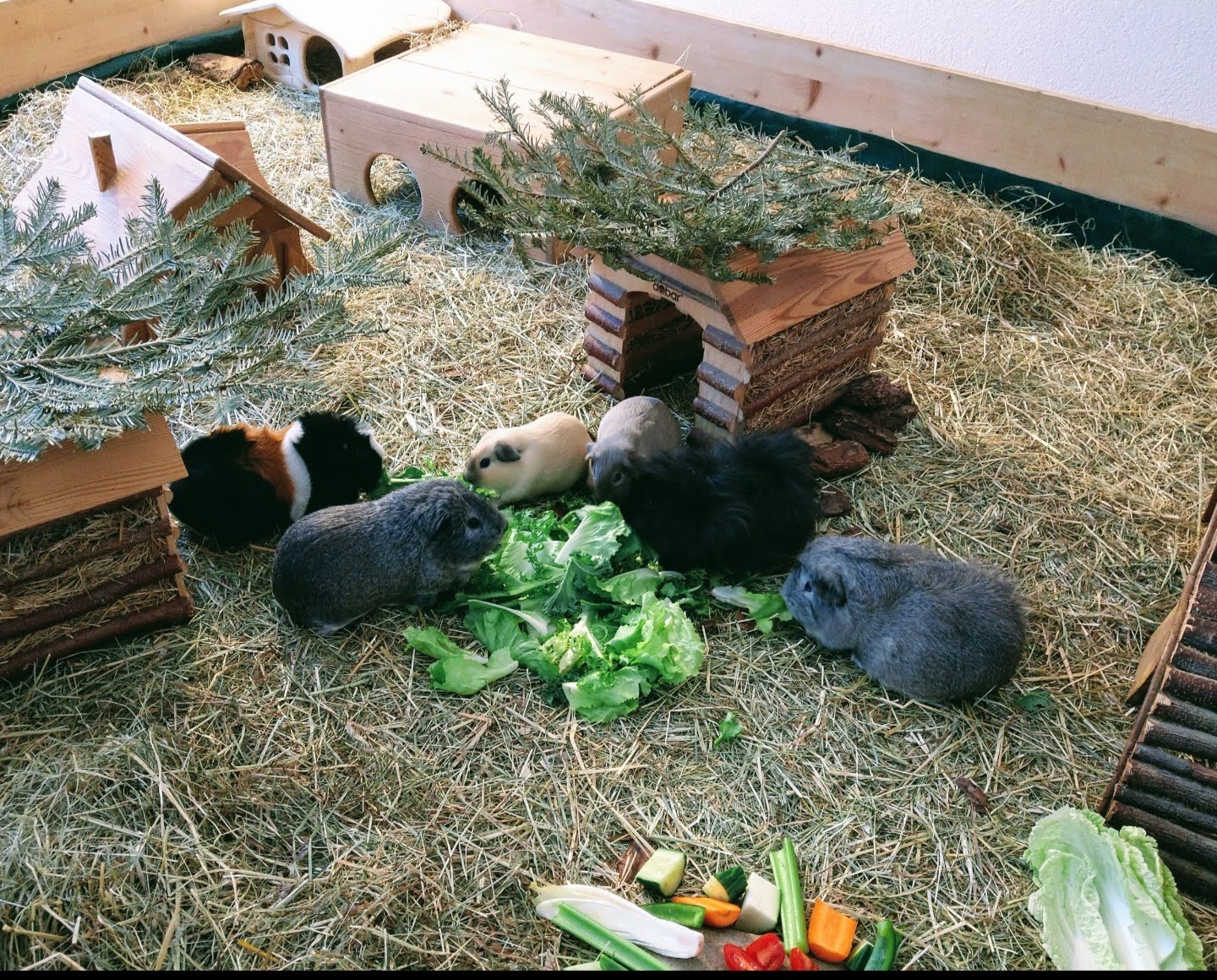 Mein Name ist Camilla, meerifiziert bin ich seit 1996, alles fing an mit zwei Weibchen aus der Zoohandlung und einem Gitterkäfig. Bald entwickelte sich daraus eine Passion; die Gehege wurden immer grösser, die Meerschweinchen immer mehr. Ich war Mitglied in zahlreichen Foren und fand es sehr traurig, dass diese Foren eines ums andere eingingen. Umso glücklicher bin ich, dieses hier gefunden zu haben. Mittlerweile gibt es zwar auf Kleinnager spezialisierte Tierärzte, aber nichts ersetzt den qualifizierten Austausch mit anderen meerikundigen Menschen. In den 28 Jahren mit diesen Tieren habe ich auch so einiges erlebt, zweimal unwissentlich trächtige Weibchen aufgenommen, ein übler Mycoplasmen-Befall hat mir vor erwa 10 Jahren fast die ganze Truppe geraubt, zeitweise hielt ich zwei Frühkastraten problemlos mit fünf Weibchen zusammen und 2024 hat mir gleich vier Todesfälle beschert... aber auch drei Neuzugänge. Aktuell leben hier sechs Schweinzerls, ein Frühkastrat und fünf Damen. Als begeisterte Hobbygärtnerin baue ich das Futter für meine Tiere weitgehendst selber an. Fotos werden momentan wegen hibbeliger Jungschweine und schlechten Lichtverhältnissen nicht so berauschend:
