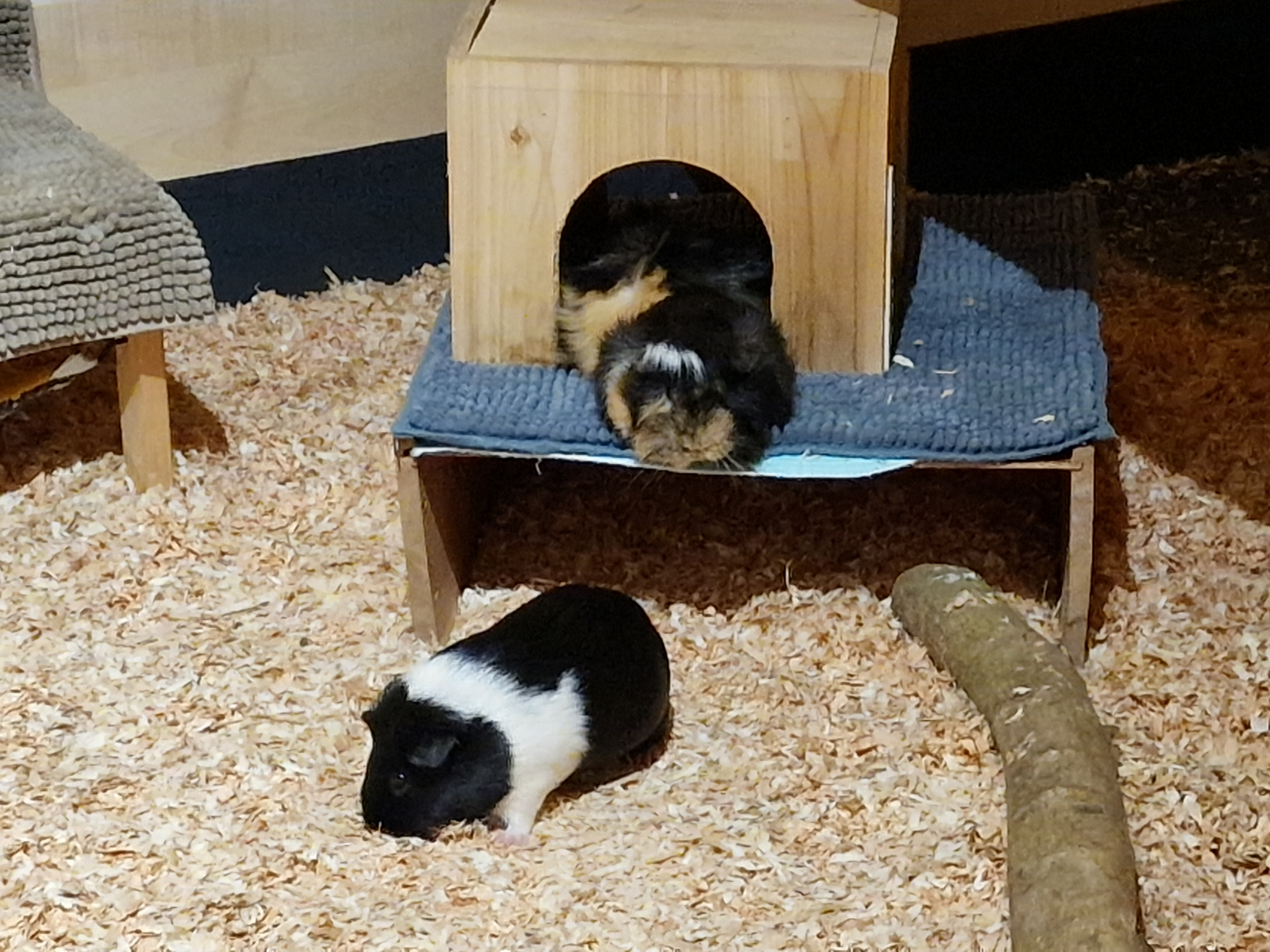 Meine Schweinchen springen auch auf die Hochebenen und wieder hinunter, obwohl es in beiden Gehegeteilen jeweils flache, mit Fleece belegte Rampen gibt. Seit neuestem benutzen immerhin Karla und Ludwig an und zu, selten die Rampen zum Hochgehen.