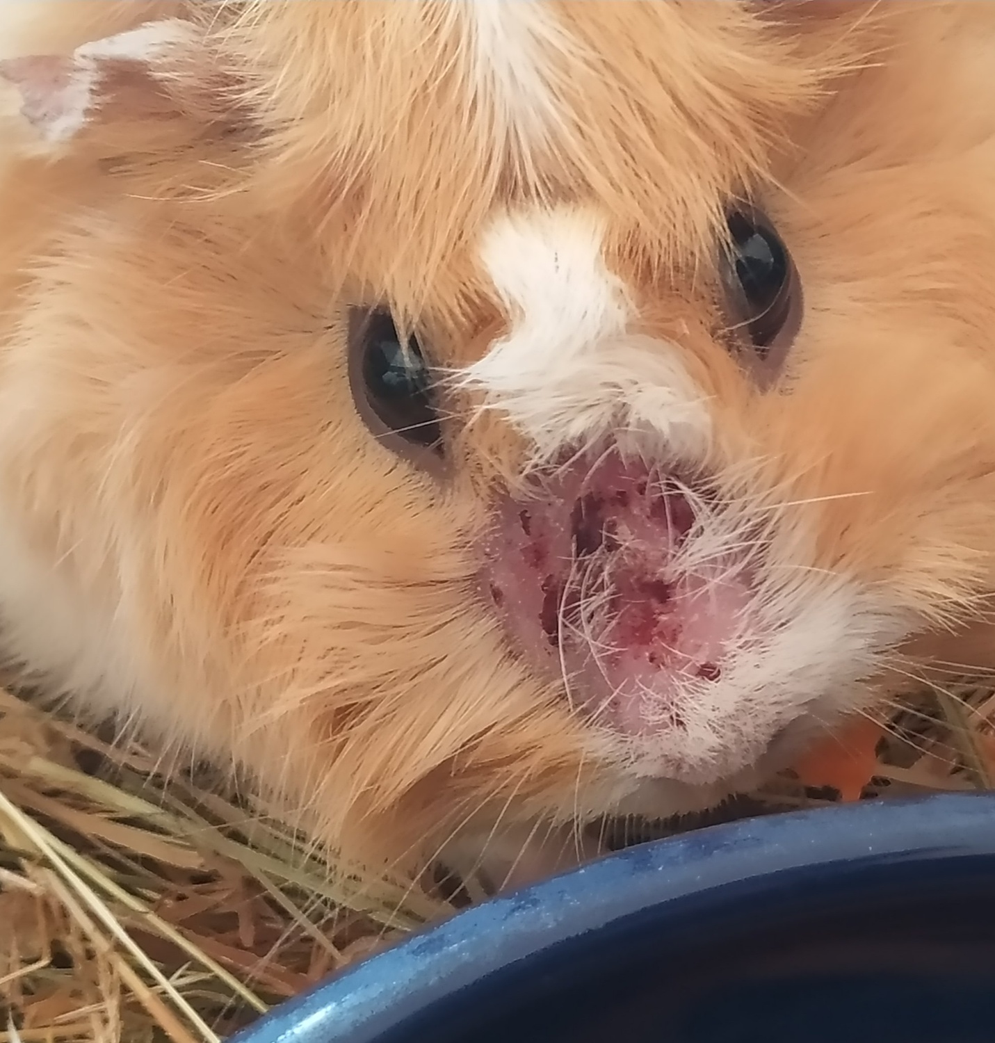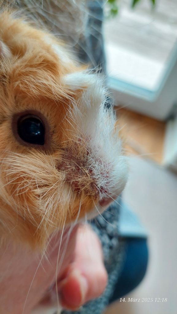 Vorhin haben wir gesehen, dass unsere Amalie eine seltsame Stelle auf der Nase hat. Gestern ist mir bei der normalen Versorgung nichts aufgefallen und vorgestern hatte sie 100-ig sicher noch nichts.