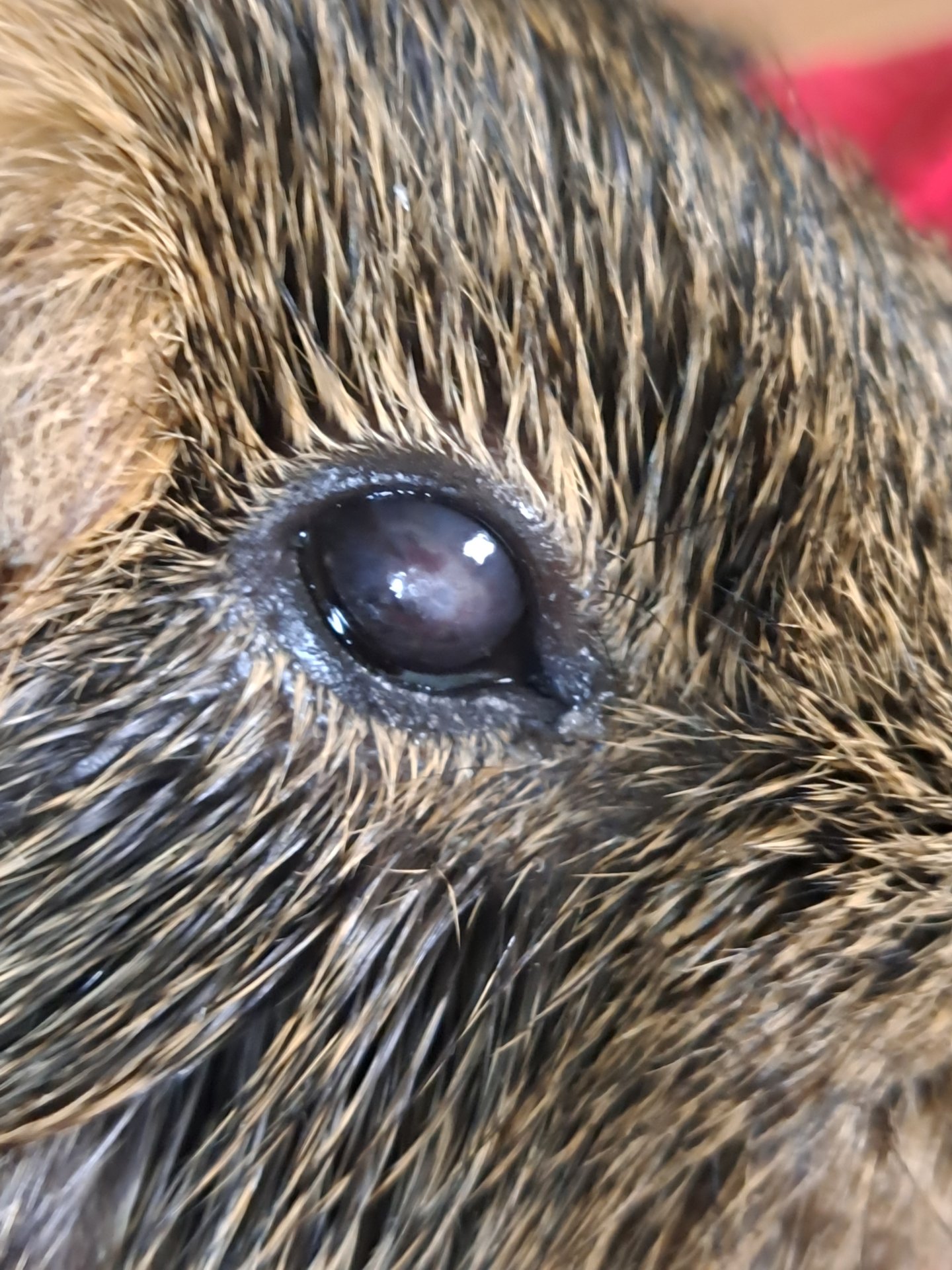 Bei jedem Tierarztbesucht wurde das Auge eingefärbt und der Augeninnendruck gemessen, dieser war jedes Mal im Normalbereich und unauffällig.
