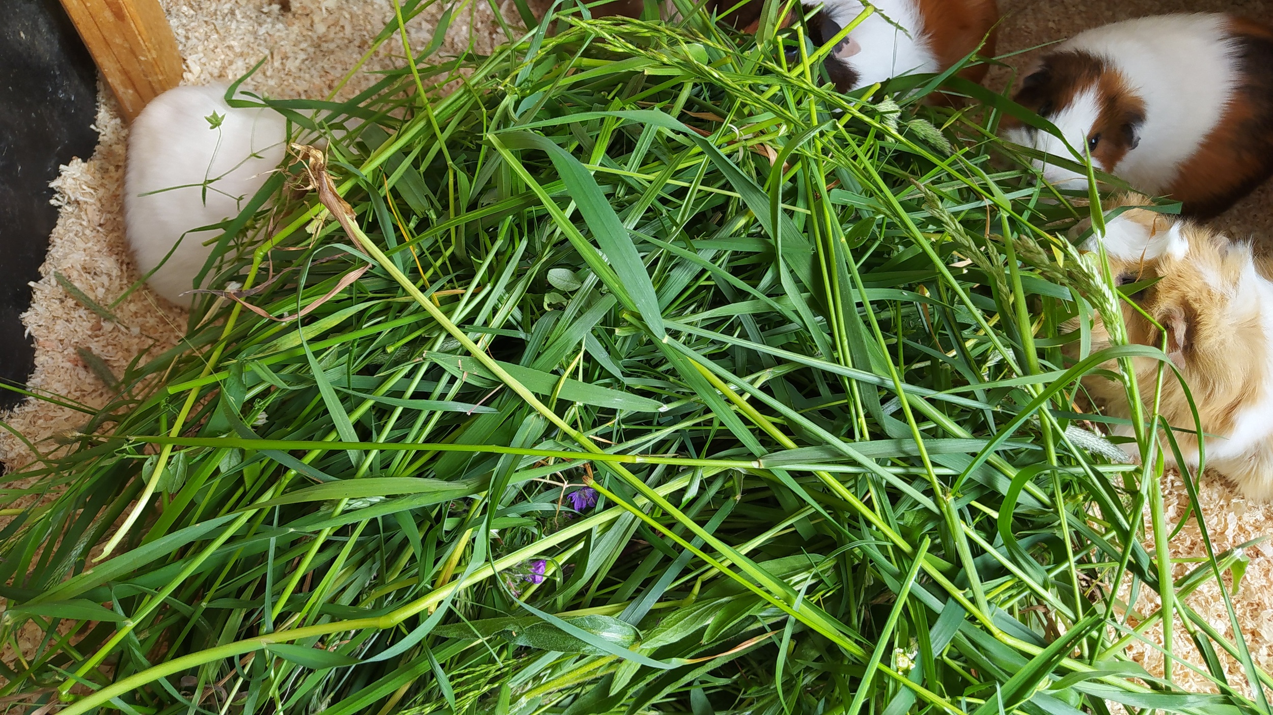 Einige von uns haben ja Gärten und sofern diese groß genug sind, wäre es vermutlich möglich, "Wiese" für Meerschweinchen dort wachsen zu lassen. Andere haben vielleicht sogar ein Stück Wiese, von dem sie offiziell und systematisch schneiden dürfen. Bisher habe ich weder ein eigenes noch ein fremdes Wiesenstück zu diesem Zweck.