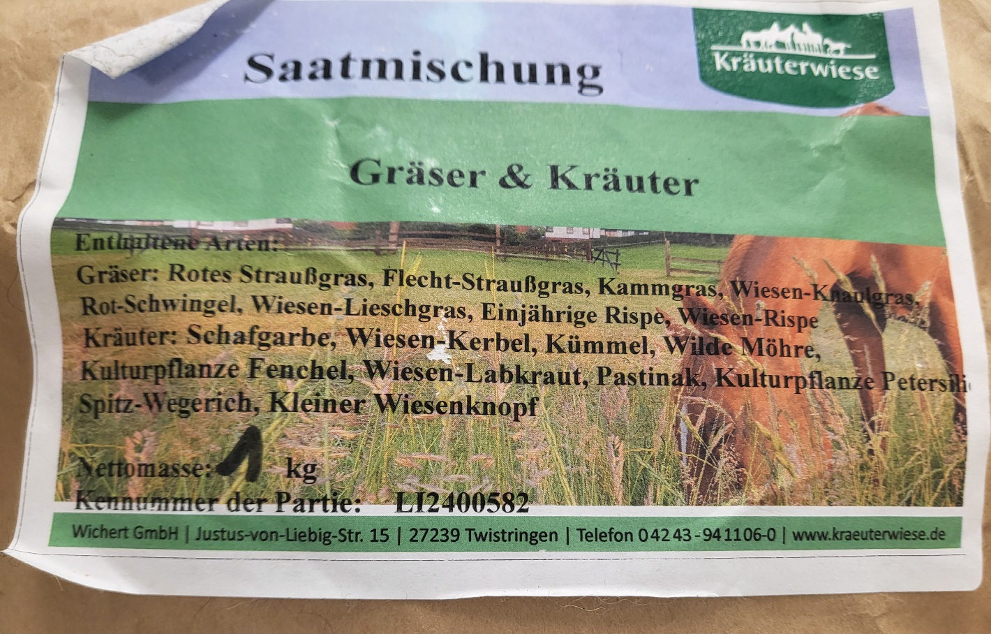 Wiese für Meerschweinchen ist ja keine schöne Magerwiese mit vielen Wildblumen. Sie sollte m.E. deutlich fetter sein und trotzdem neben Gras einige Wildkräuter enthalten. Vermutlich müsste man diese zumindest zum Teil am Rand aussähen, da sie in hohem saftigen Gras vermutlich erstickt würden. Richtig?