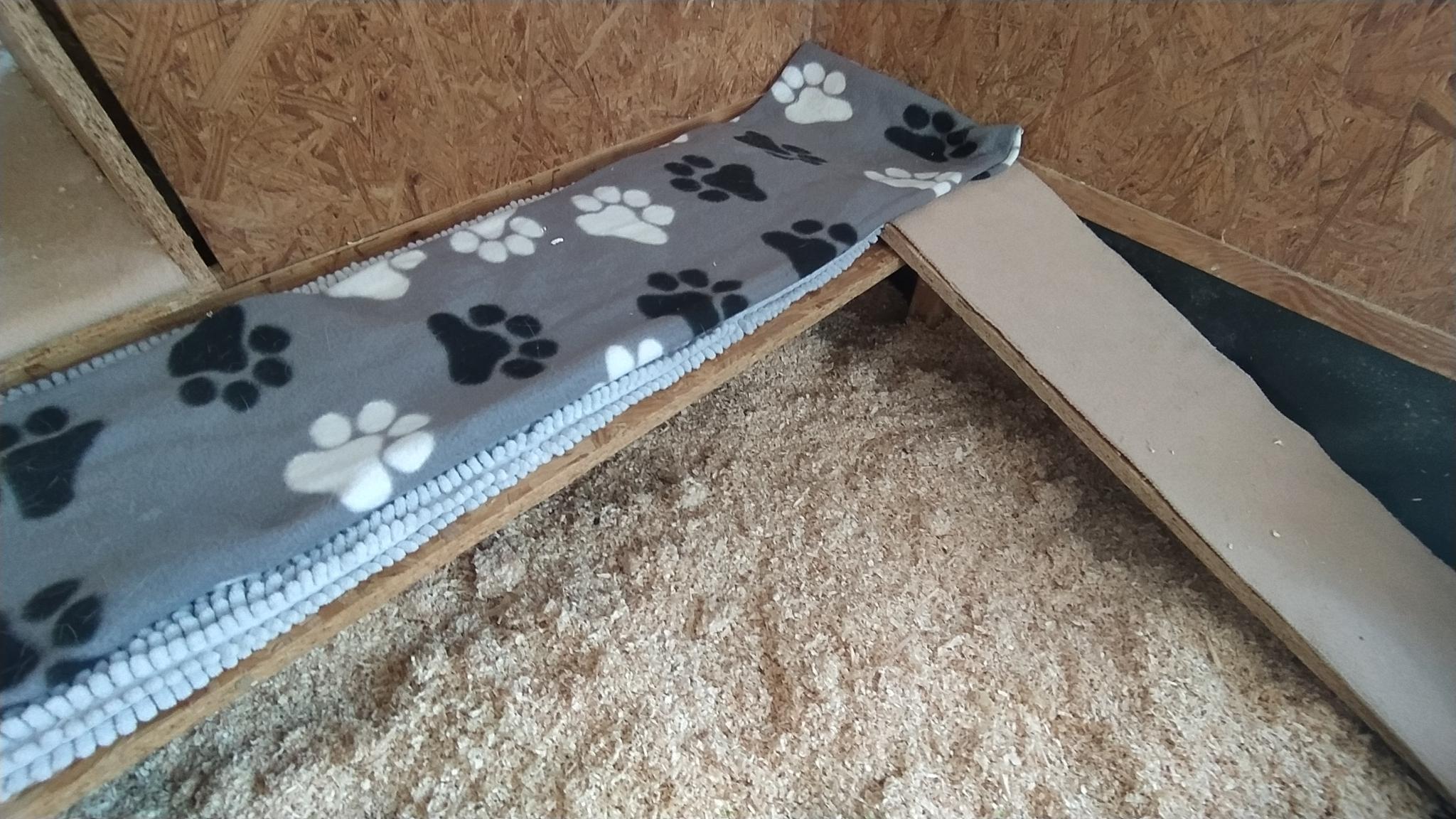 Sie sollten gut begehbar sein, nicht rauh sein und keine Rillen haben, in denen die Krallen hĂ€ngen bleiben können. Ich habe Fleece als Belag. HandtĂŒcher gehen aber auch.