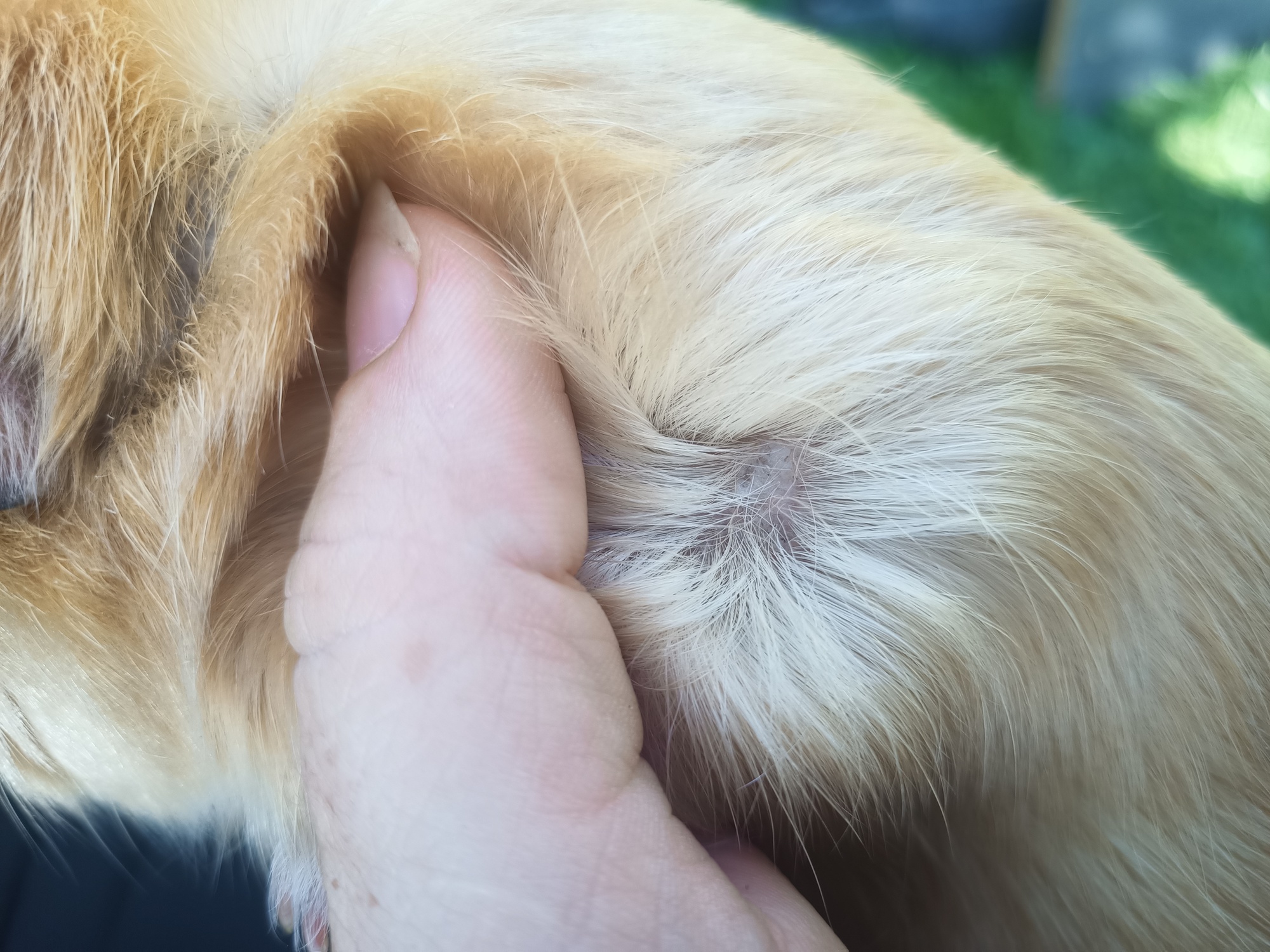 Es ist zwar bei mir schon einige Zeit her deswegen kann es sein, dass mich mein Gedächtnis trügt aber Milben sieht man eher an kleinen schwarzen Pünktchen im Fell und Pilz eher durch die Schuppen. Wenn durch einen Kampf ein Büschel ausgerissen wurde, dann wäre die Haut drunter sauber.