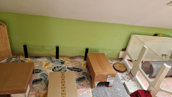 In Bezug auf Swifty wären wahrscheinlich reine Unterstände günstiger, da sie dazu neigt Häuser zu "verteidigen" (sie schaut tw aus der Tür und geht auf alle die vorbeilaufen). Allerdings brauchen wir auch etwas Sichtschutz, damit Gracie sich mal zurückziehen kann.