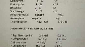 Ich suche dann gleich nochmal ihre Blutwerte raus. Vielleicht ist da ja doch was zu sehen. Ich weiß nicht, ob sich jemand von euch mit den Werten auskennt.