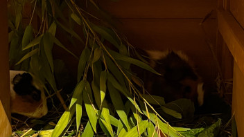 Die anderen zwei Meerschweinchen ziehen ein, sobald das Gehege fertig ist. Diese sind auch bereits Außenhaltung gewöhnt.