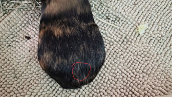 Wenn ja, könnte es einfach nur die Kaudaldrüse sein. Die gehört dort hin und ist bei manchen Tiere etwas deutlicher zu sehen als bei anderen.
