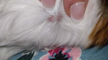 unser weibliches Meeri hat auf der rechten Seite etwas unterhalb dem Ohr so eine Art Pickel.