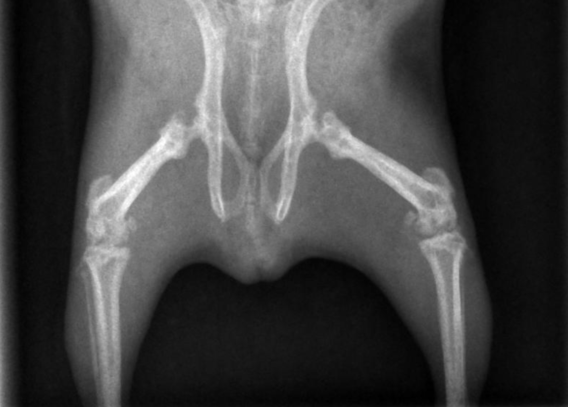 Bei Motte trat die OD vor allem in der Hüfte und den großen Hinterbeinknochen auf. Meerschweinchen, die Probleme im Kiefer(gelenk) haben, haben eine deutlich schlechtere Prognose. Platt gesagt, ein bisschen humpeln ist nicht so schlimm wie nicht kauen können.